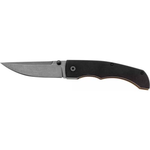 Стильний клинок виготовлений з інструментальної сталі D2 та має обробку Black Stonewash, яка забезпечує незрівнянний зовнішній вигляд та додатково маскує сліди експлуатації. Ніж приводиться в робоче положення двостороннім шпеником та надійно фіксується замком Liner Lock. Тефлонові шайби забезпечать приємний хід клинка.