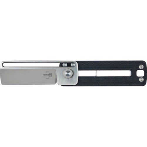 Компактний ніж Boker Plus S-Rail від надзвичайно талановитого дизайнера Даріела Кастона недарма отримав свою назву. Кишеньковий ніж відкривається за допомогою шпеника для великого пальця, яка штовхає клинок зі сталі D2 вперед по рейці з запобіжником, що забезпечує надзвичайно швидку готовність до використання. Профіль клинка разом з універсальними спусками, як у бритв, забезпечать чистий та точний різ, а сатинова обробка клинка додасть витонченості. Щоб закрити ніж, потрібно ще раз натиснути на шпеник, і лезо пересунеться на цупке руків'я з матеріалу G10.