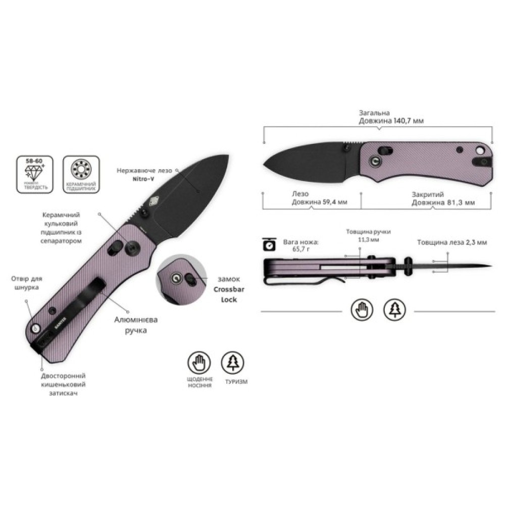 Ніж, Civivi, Baby, Banter, 2, Violet, Aluminum, Darkwash, C230742
