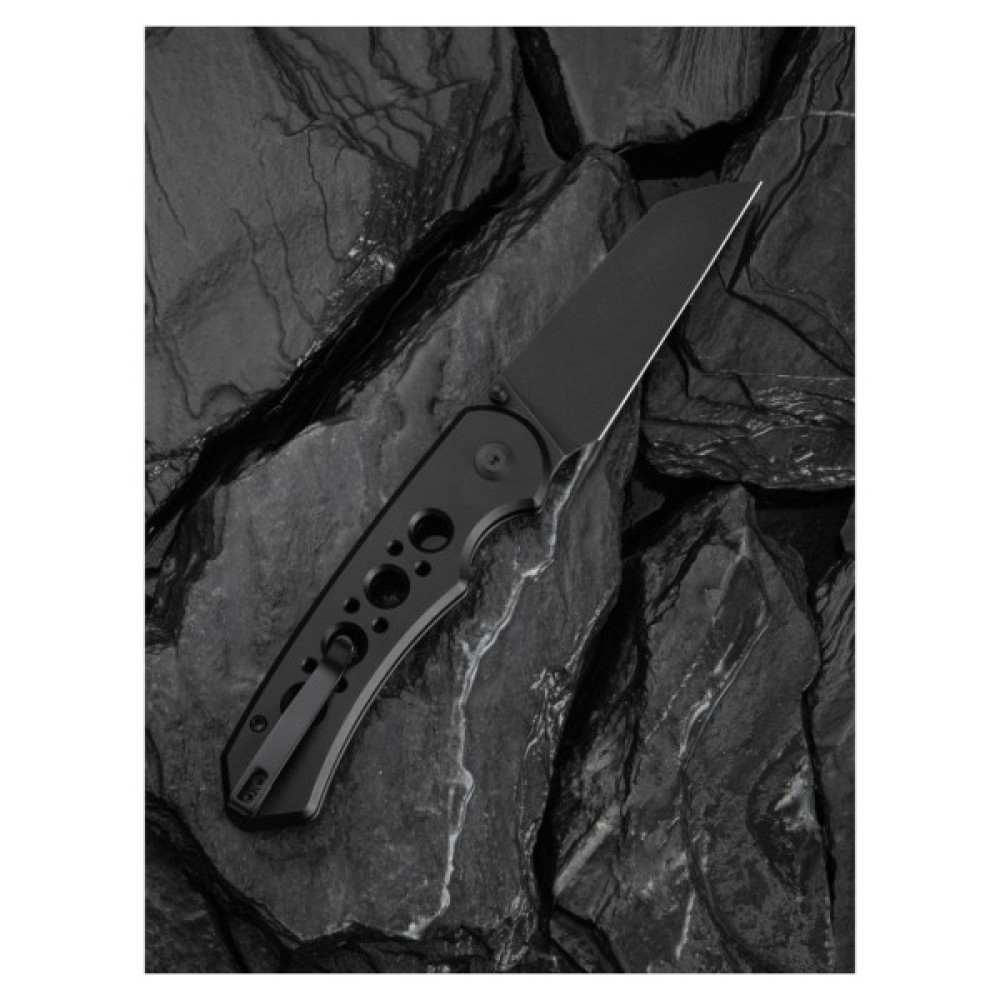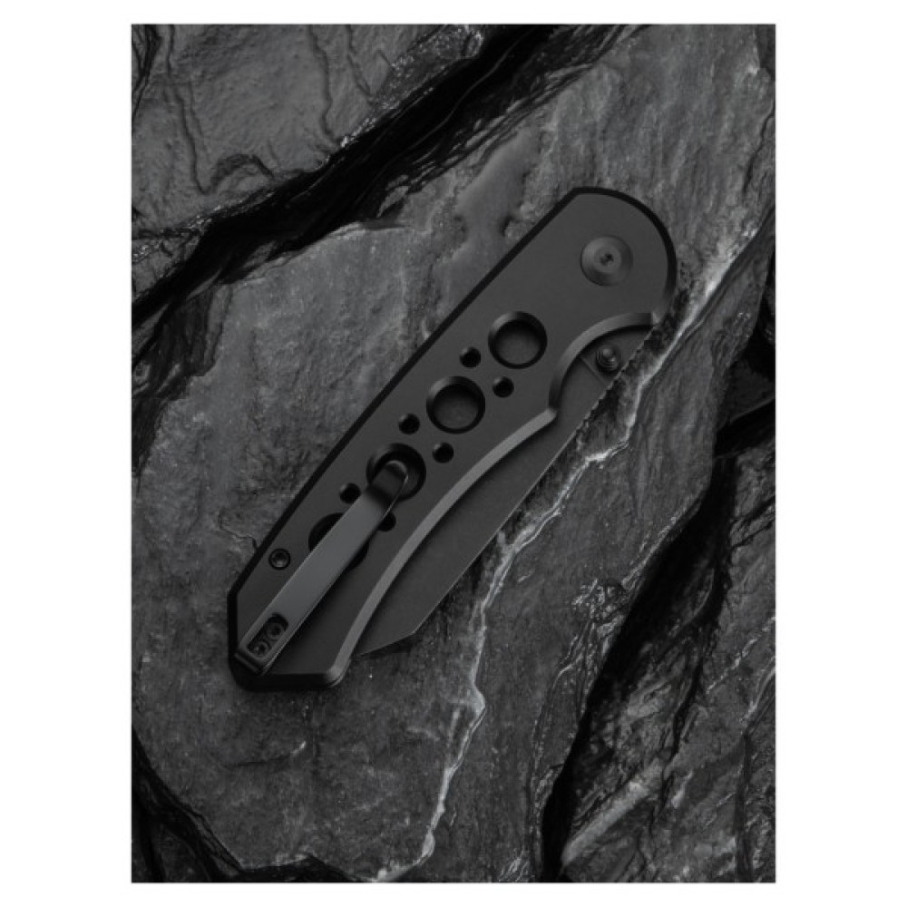 Дрібні елементи конструкції, зокрема штифт, гвинти та знімна кліпса на кишеню, виготовлені з нержавіючої сталі. Скелетонізоване руківʼя з безліччю наскрізних отворів різного діаметра знижує вагу конструкції до 98.9 г та слугує яскравим елементом дизайну.