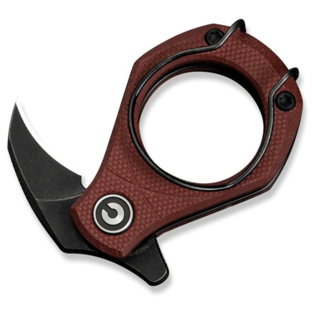 Попри мініатюрні розміри (лише 57,4 мм у закритому положенні), модель не позбавлена ергономіки, за яку відповідають шорсткі накладки з G10 на руківʼї. У конструкції також є кліпса на кишеню, яку можна використовувати як затискач для грошових купюр або кільце для носіння ножа як брелок.
