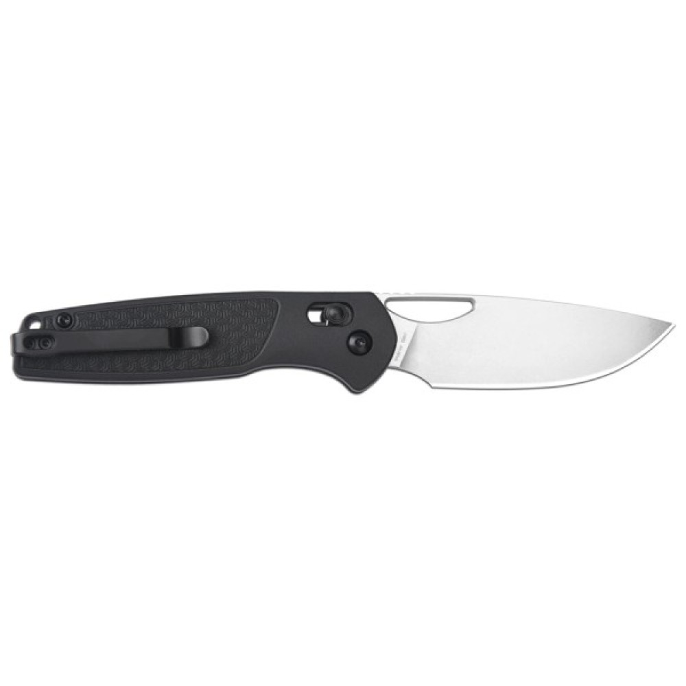 • Глибока кишенькова кліпса із нержавіючої сталі з чорним анодуванням поверхні та отвір під темляк для носіння кишенькового ножа найзручнішим способом.