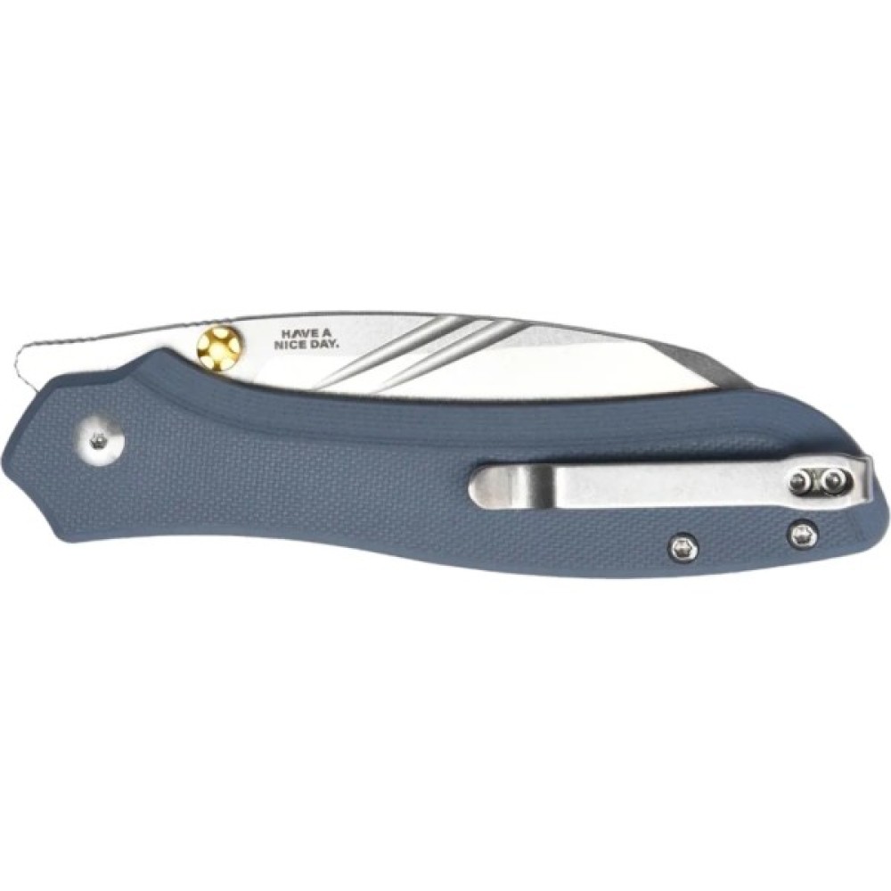 Відкриття клинка відбувається за рахунок шпеника або фронт фліпера, а у відкритому положенні фіксується замком Liner Lock. Ергономічні накладки руків'я виготовлені зі склотекстоліту G10. На торці розміщена кліпса глибокої посадки для зручного носіння ножа на кишені.