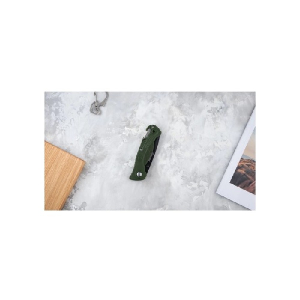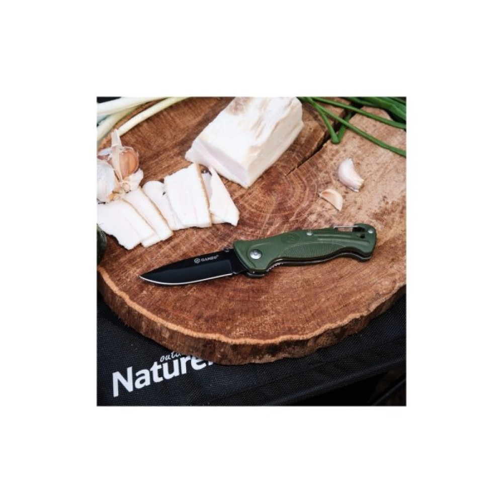 Довжина клинка в похідному положенні: 114 мм. На рукоятці ножа Ganzo G611G є рятувальний свисток для подачі сигналу лиха і карабін, завдяки якому ніж можна пристебнути до рюкзака або поясу.