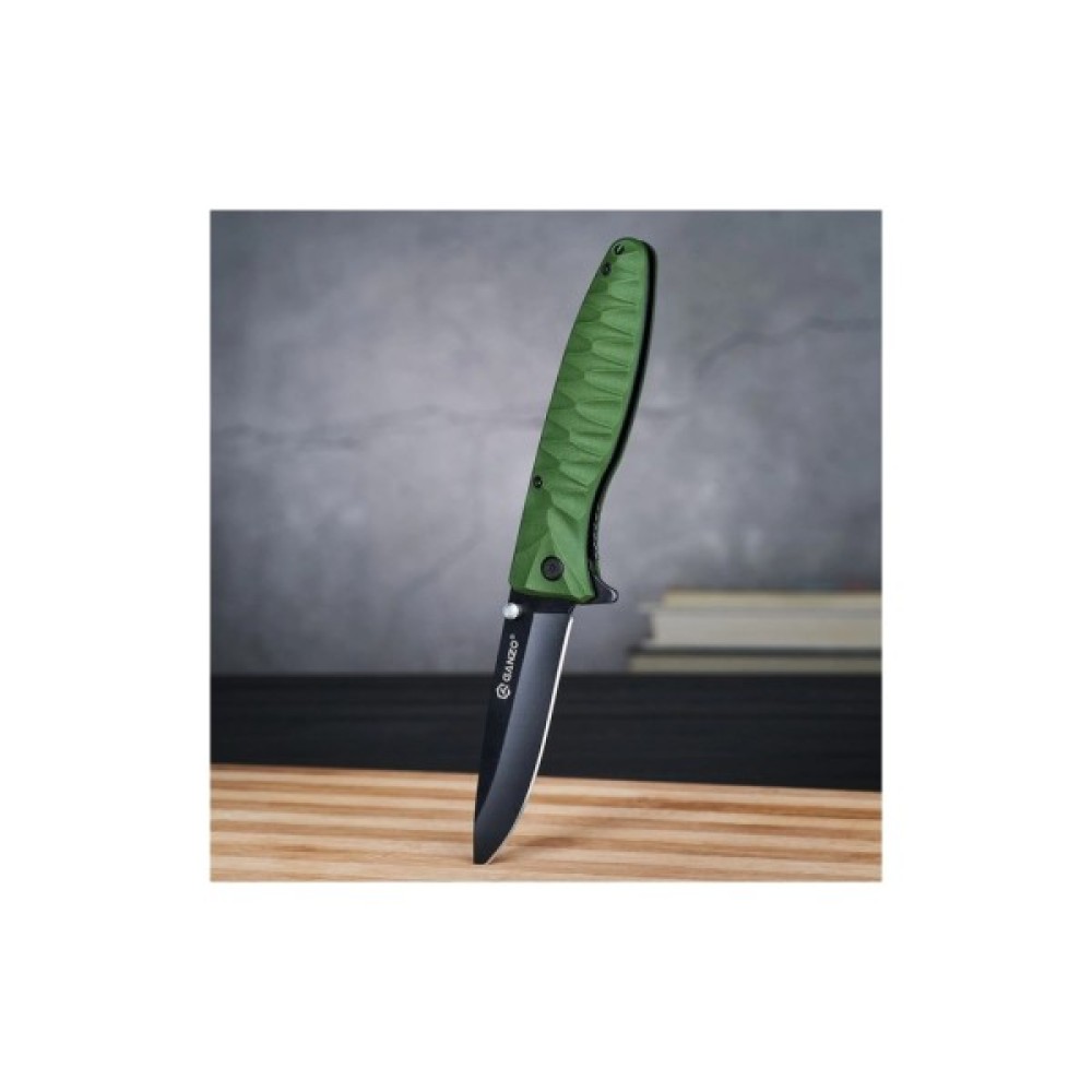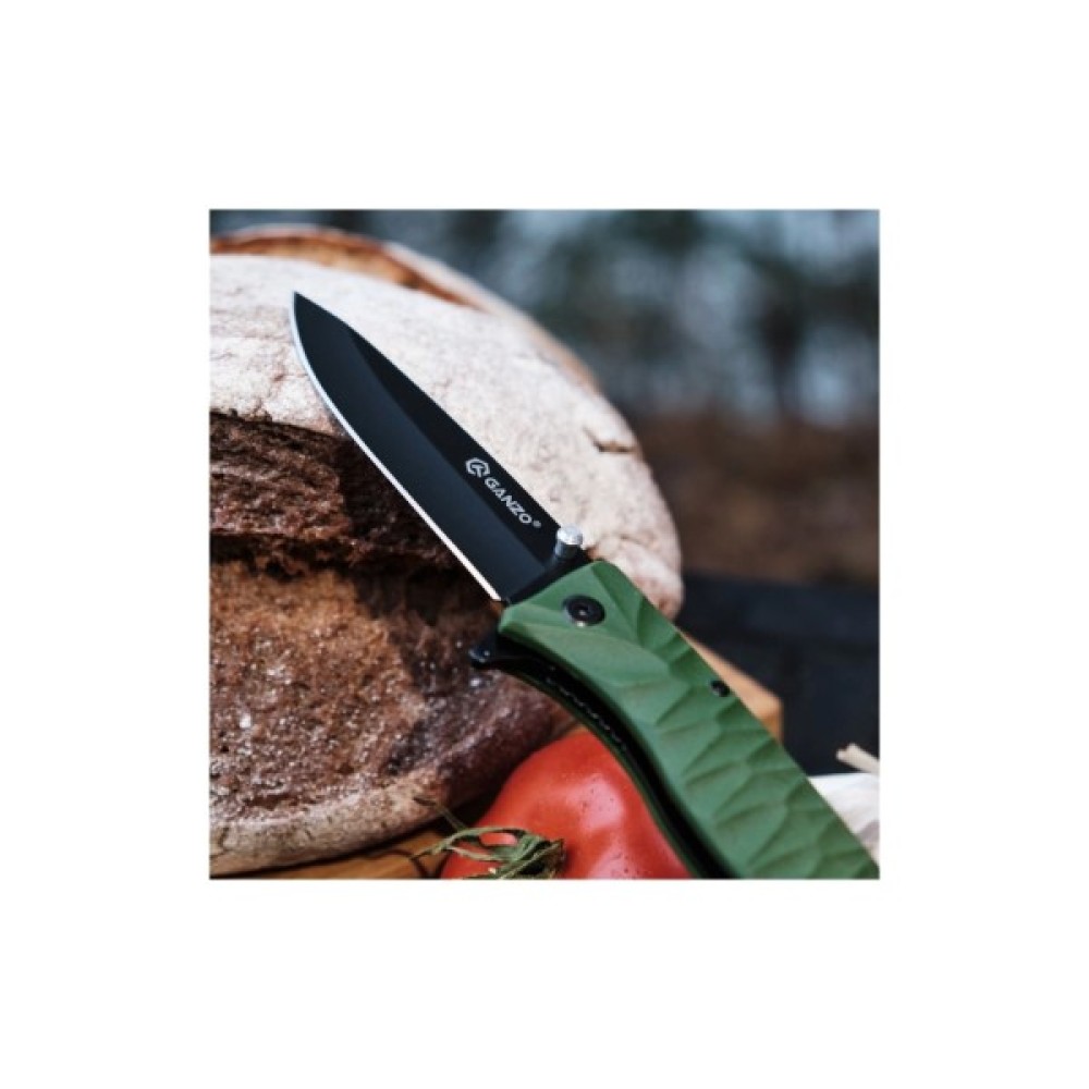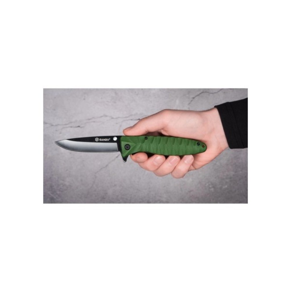 Клинок ножа Ganzo виготовлено з якісної корозійно-стійкої сталі 440C твердістю 55 HRC. Клинок має товщину 3 мм та увігнуті спуски шириною до 13 мм. Клинок Ganzo зручно витягати та закривати однією рукою. У відкритому положенні він фіксується за допомогою замка Liner Lock.
