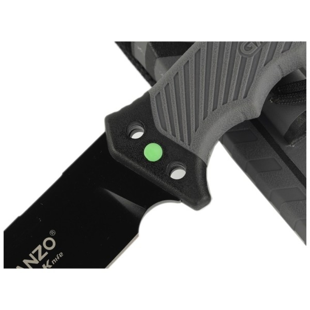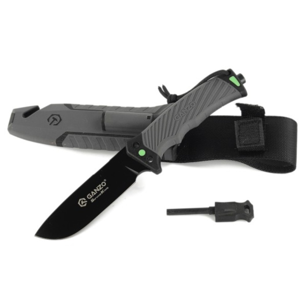 У комплект з ножем входять фірмові піхви, які мають доповнення у вигляді невеликого кресала, стропоріза і компактної пластини, що виконує функцію Точила, якщо під рукою немає повноцінного точильного каменю. Модель Ganzo G8012V2-BK має отвір під темляк і продається разом з паракордом. Це синтетична мотузка з особливим плетінням, яке підвищує міцність матеріалу. Темляк можна використовувати як додатковий варіант для фіксації вироби на поясі або сумці.