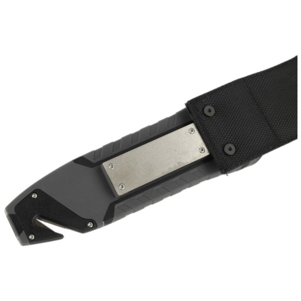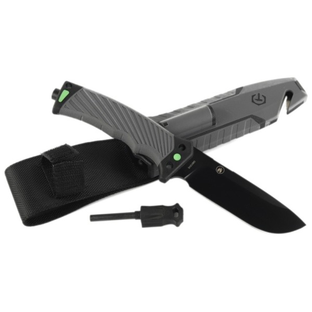 • є компактне кресало, стропоріз і точилка, які вбудовані в піхви;