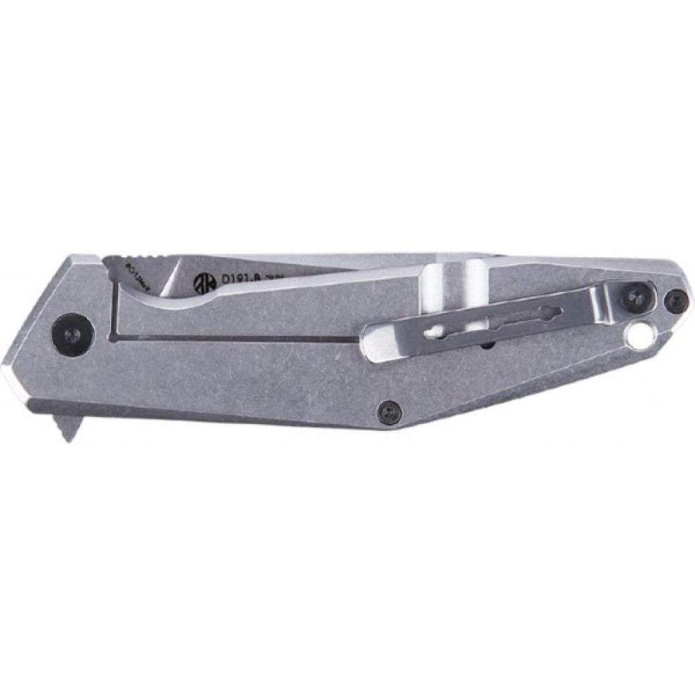 Клинок форми clip-point. Ножі з подібною формою леза вважаються універсальними інструментами, крім того, здатні бути ефективною зброєю. Марка сталі - 8Cr13MoV, є нержавіючою, і стійка до пошкоджень. Багата на вміст вуглецю, хрому, ванадію і молібдену. Непогано зберігає гостроту і з легкістю піддається заточенню. Сталь при виготовленні ножа піддавалася додатковій кріогенній обробці, що забезпечило високу міцність підсумкової моделі. Надійний і міцний інструмент. Твердість клинка досягає 57-59 одиниць за шкалою Роквелла.