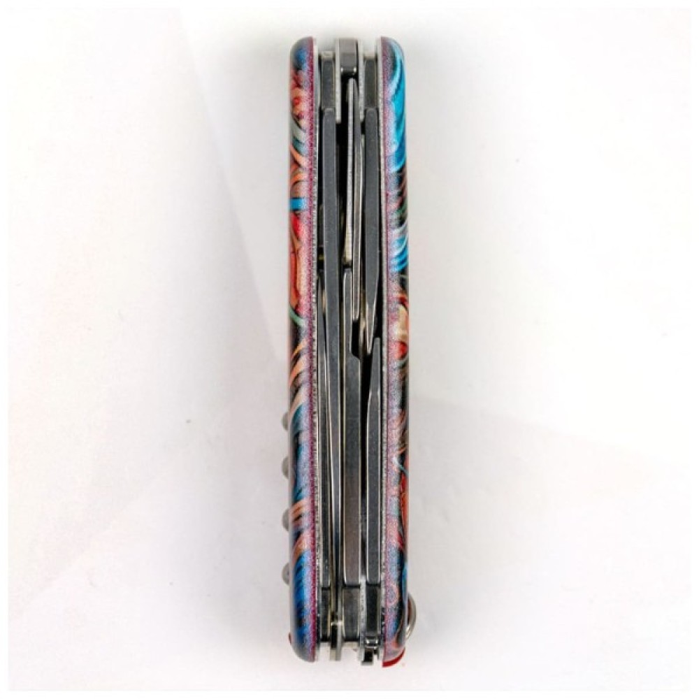 CLIMBER – багатозадачний дизайн із колекції середніх кишенькових ножів завдовжки 91 мм, який найчастіше обирають за наявність дуже крутих ножиць. Ідеальний компаньйон для повсякденного життя та відпочинку на свіжому повітрі: відрізати, відкрити банку чи пляшку, відкрутити чи закрутити, привести до ладу нігті, обрізати зайві нитки на одязі, та хоч вирізати святкову саморобку – все це під силу Victorinox Climber. Незамінна річ, щоб підготуватися до щоденних викликів. Кожен із інструментів порадує бездоганною роботою та довговічністю.