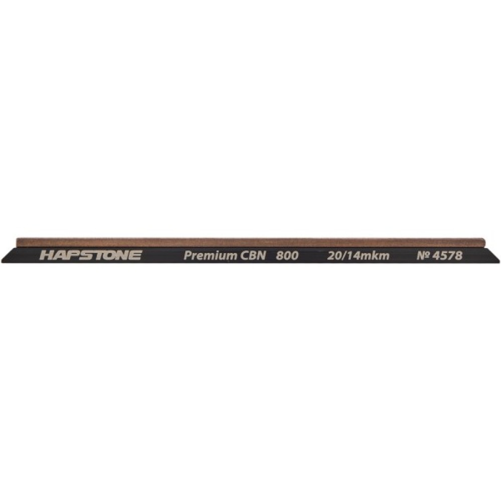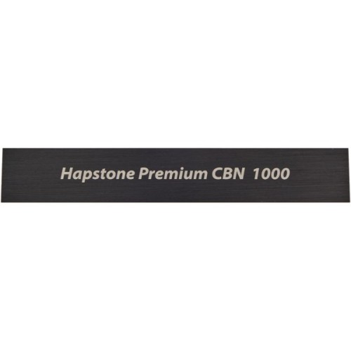 Hapstone Premium CBN - точильний камінь преміум-класу зернистістю 150 grit, який виготовлений з порошку ельбору (кубічний нітрид бору) з використанням металоорганічної зв'язки (її зносостійкість дорівнює металевій, проте ельборовий брусок працює набагато м'якше). Hapstone-камінь базується на алюмінієвому бланку з покриттям із порошкової фарби та підходить для заточування, як сучасних "super-сталей", так і керамічних ножів.