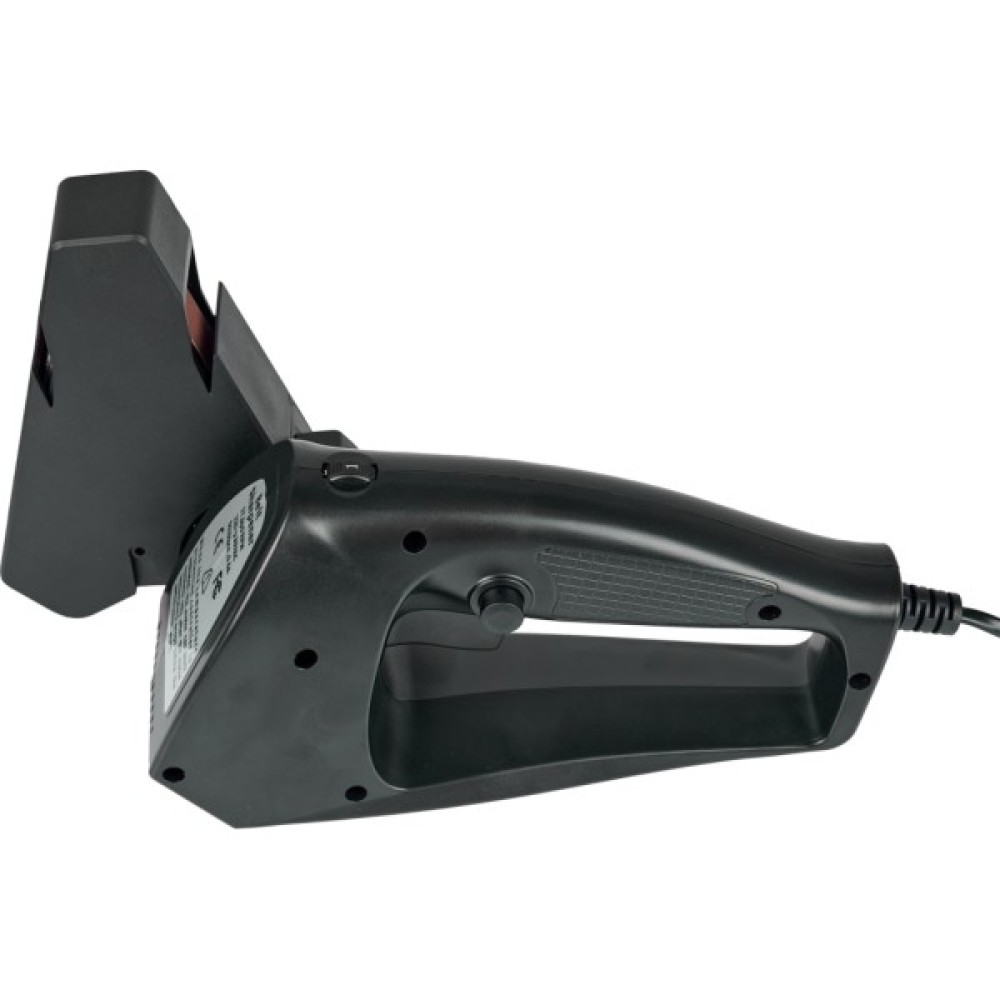 Заточный блок может устанавливаться в 4 позициях. Для облегчения и удобства процесса - имеется пластиковый кожух с заточными направляющими в 24 градуса. Электроточило имеет 6 уровней скорости, что добавляет вариативности при заточке конкретного инструмента. Полезным дополнением является наличие фиксатора кнопки включения, который позволит зафиксировать нужную скорость гриндера и убрать пальцы для более удобного хвата на рукоятке.