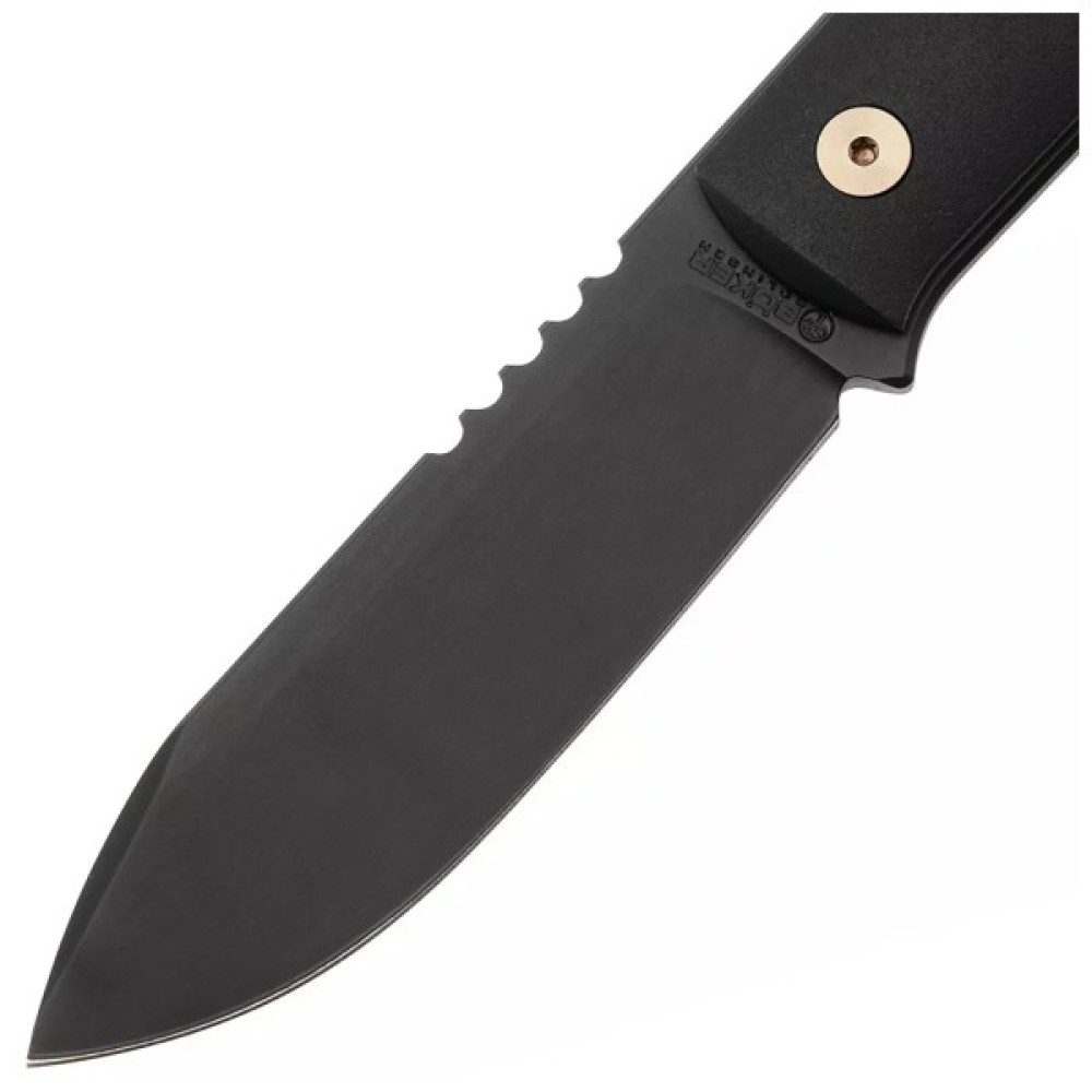 Клинок профілю Drop Point виготовлений з преміальної порошкової сталі CPM MagnaCut з твердістю 61–62 HRC. Конструкція Full Tang забезпечить надійність та стійкість під час експлуатації. Насічки на обуху надають додатковий упор під час силових робіт. Ніж поставляється в різноманітних варіаціях, з накладками з дерева, взагалі без накладок або з накладками з матеріалу Richlite.