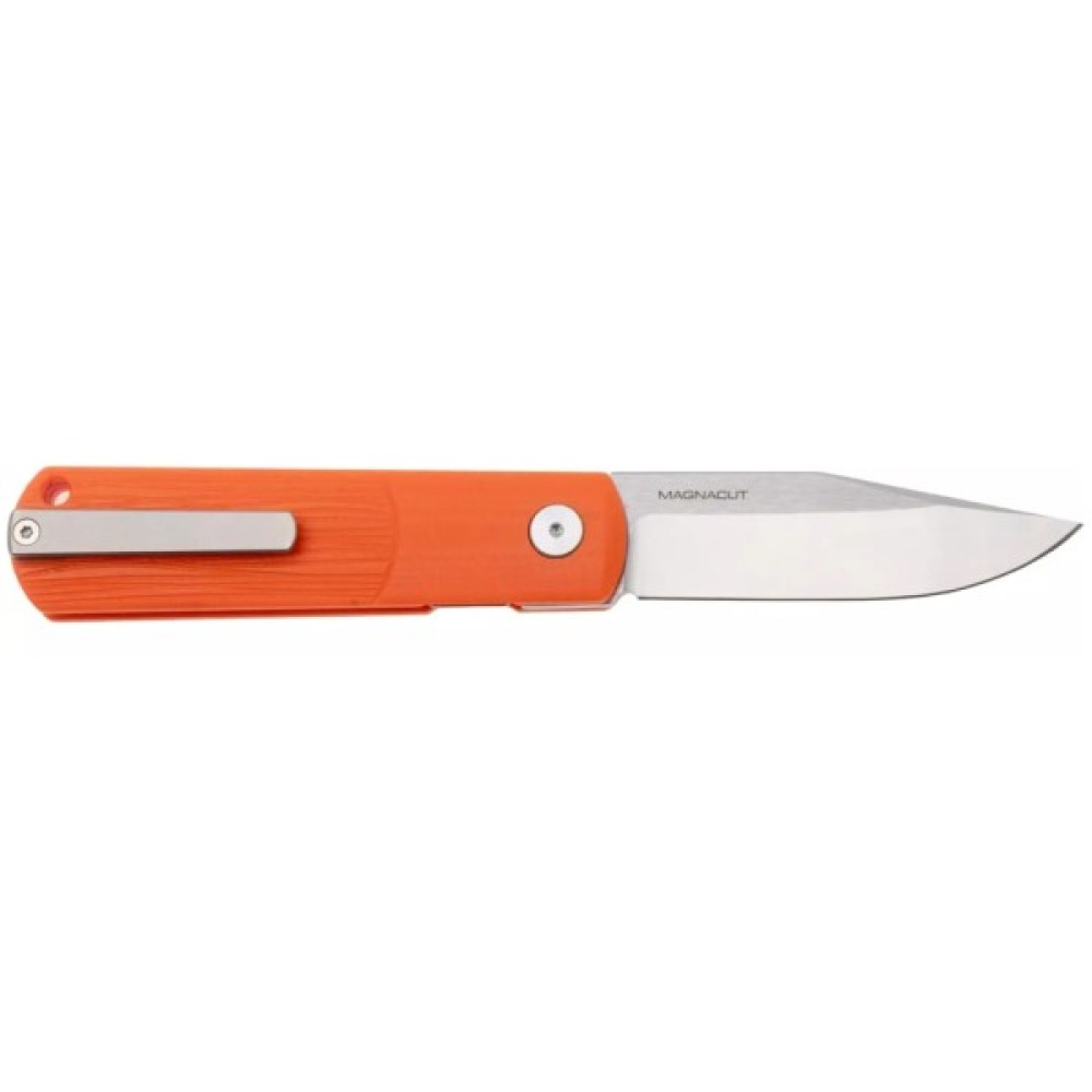 Сучасна інтерпретація Boker Solingen зберігає всі ключові елементи класичного дизайну, одночасно осучаснюючи його. Клинок виготовлений із преміальної, порошкової сталі CPM MagnaCut, що приводиться в робоче положення за допомогою невеликого фліппера, а система шарикопідшипників забезпечує плавне відкриття. Замок Liner Lock надійно фіксує меч у відкритому положенні. Рукоятка виконана зі склотекстоліту G10, що забезпечує впевнений хват завдяки текстурованій поверхні. На кінці розміщена кліпса та отвір для темляка чи стильного ремінця.