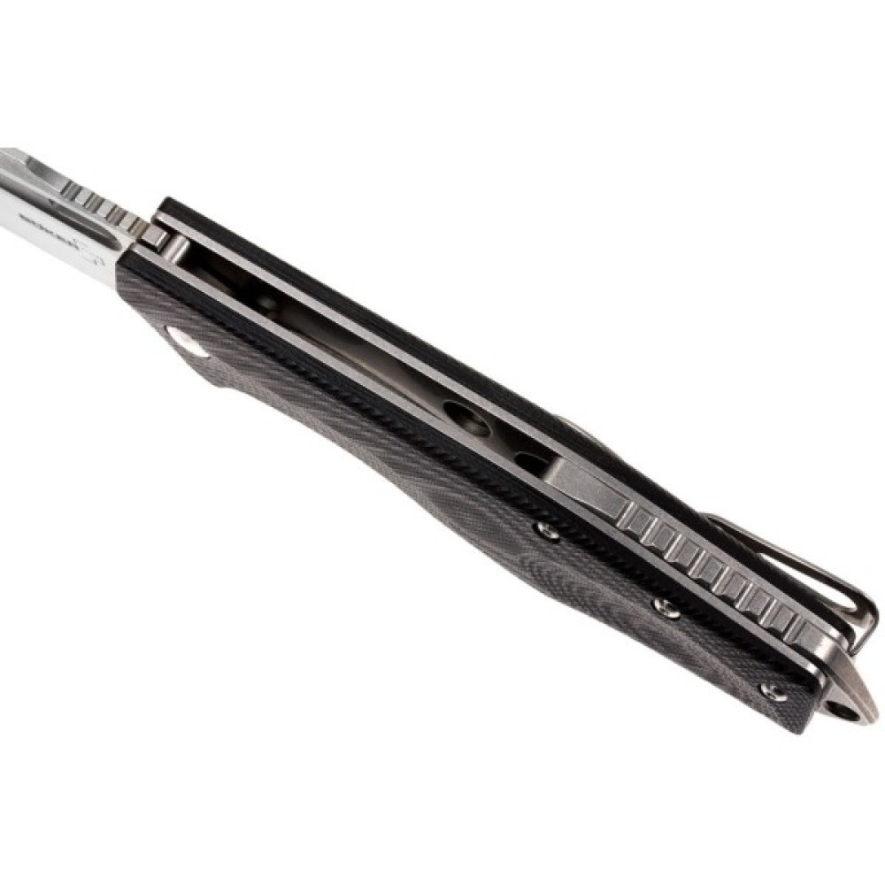 Клинок виконаний зі швидкорізальної сталі марки D2. Загальну картину доповнює рукоять з полімеру G-10 чорного кольору, агресивного виду отвір під темляк і кліпса глибокої посадки.