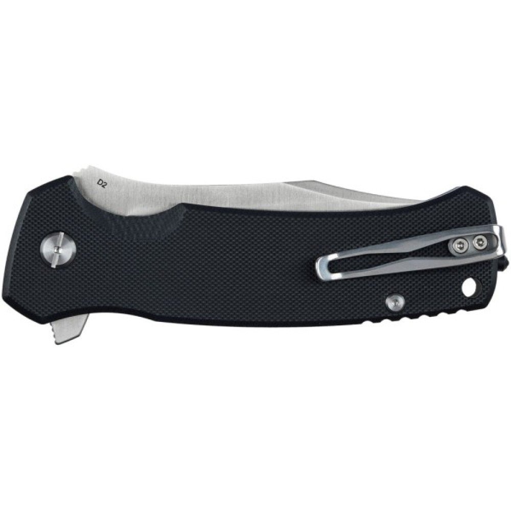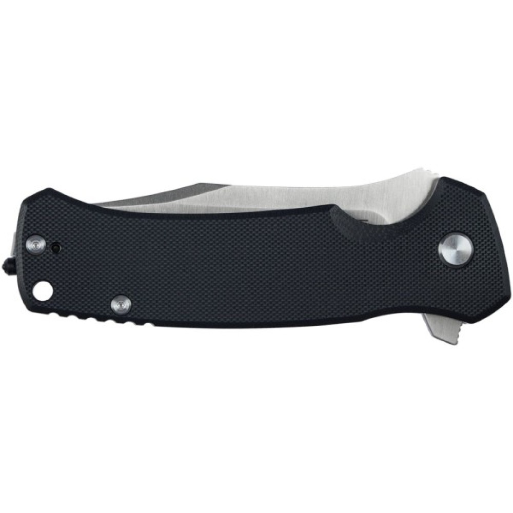 Легкі, текстуровані накладки на руків'ї з матеріалу G10 гарантують надійний хват навіть вологими руками, а через ергономічну форму руків'я, його не хочеться випускати з рук. M.E.R.K. 1 оснащений цікавою, екстравагантною кліпсою глибокої посадки (tip-up), практичним отвором для ремінця чи темляка та склобоєм з карбіду вольфраму на кінці руків'я. Поставляється з високоякісним нейлоновим чохлом для безпечного зберігання та носіння.
