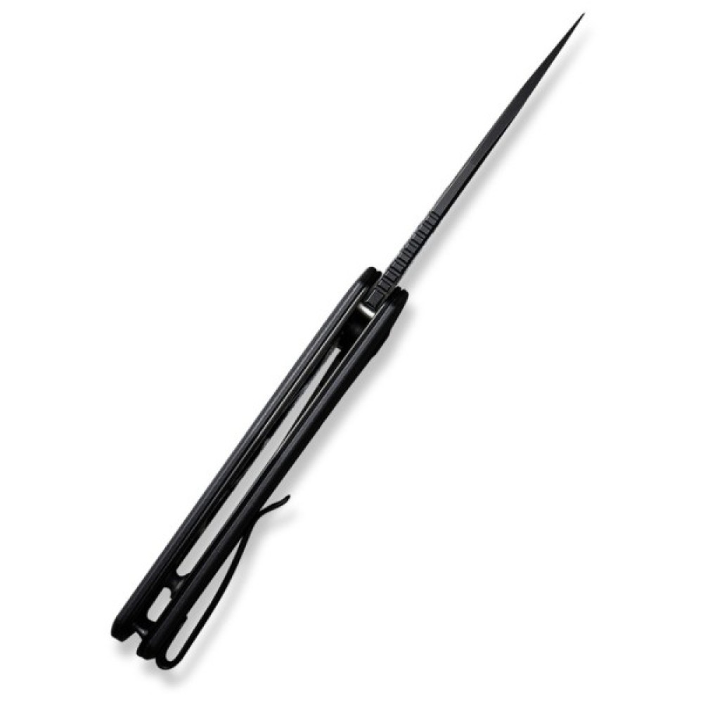 - Кліпса з нержавіючої сталі. Двопозиційний затискач можна фіксувати з будь-якого боку руківʼя для носіння ножа у положенні Tip-Up. Чорне покриття гармонує із загальним дизайном моделі.