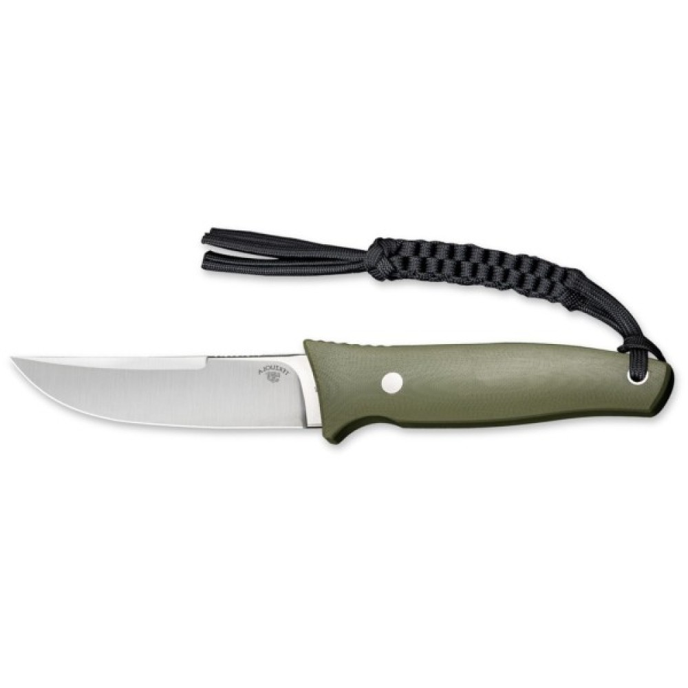 Конструкція ручки проста і зручна, підійде для щоденного використання. За рахунок мінімалістичності забезпечується максимальна практичність ножа. Покриття ручки - якісний та надійний матеріал G10 зеленого кольору. Характеризується довговічністю, добре зберігає гарний вигляд. Ручка зручно лежить у руці, є виїмки для великого пальця для гарного захвату.