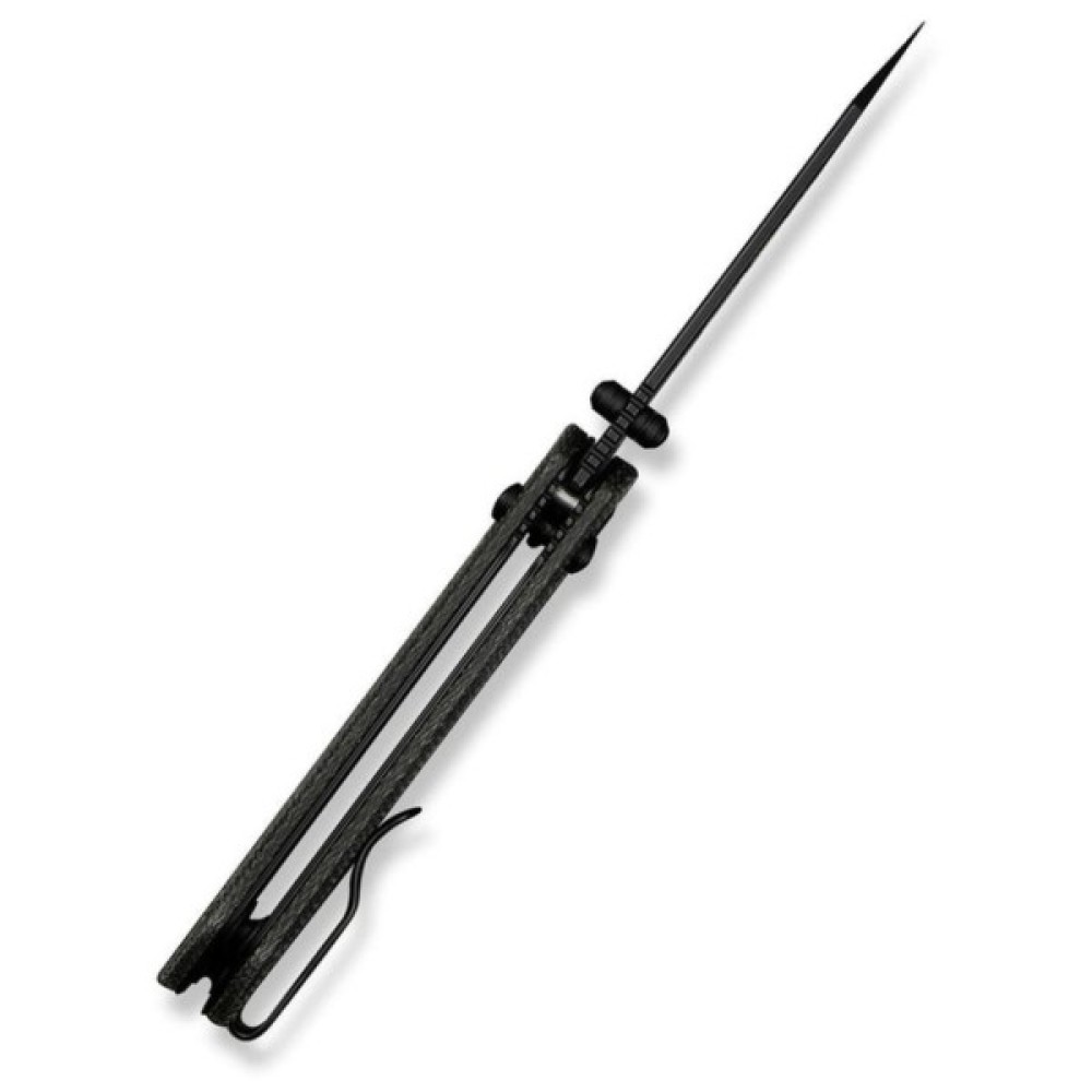 У хвості руківʼя закріплено сталевий затискач Tip-Up на кишеню. Положення затискача ви можете адаптувати під власний стиль носіння та кріпити його з правого або лівого боку ножа.