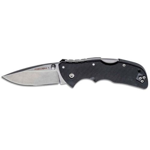 Складаний ніж Cold Steel Mini Recon 1 – повернення легендарної моделі Mini Recon. Модель залишила свої чудові характеристики легкого, але міцного складаного ножа. Модель представлена у трьох варіантах профілю клинка: Clip Point, Spear Point та Tanto Point. Для виготовлення клинків використовується сталь AUS 10A з фінішною обробкою Stone Wash. Дана марка сталі відрізняється міцністю та довговічністю. Відкривається ніж за рахунок зручного шпеника, а фіксація в робочому положенні відбувається за рахунок системи Tri-Ad Lock.