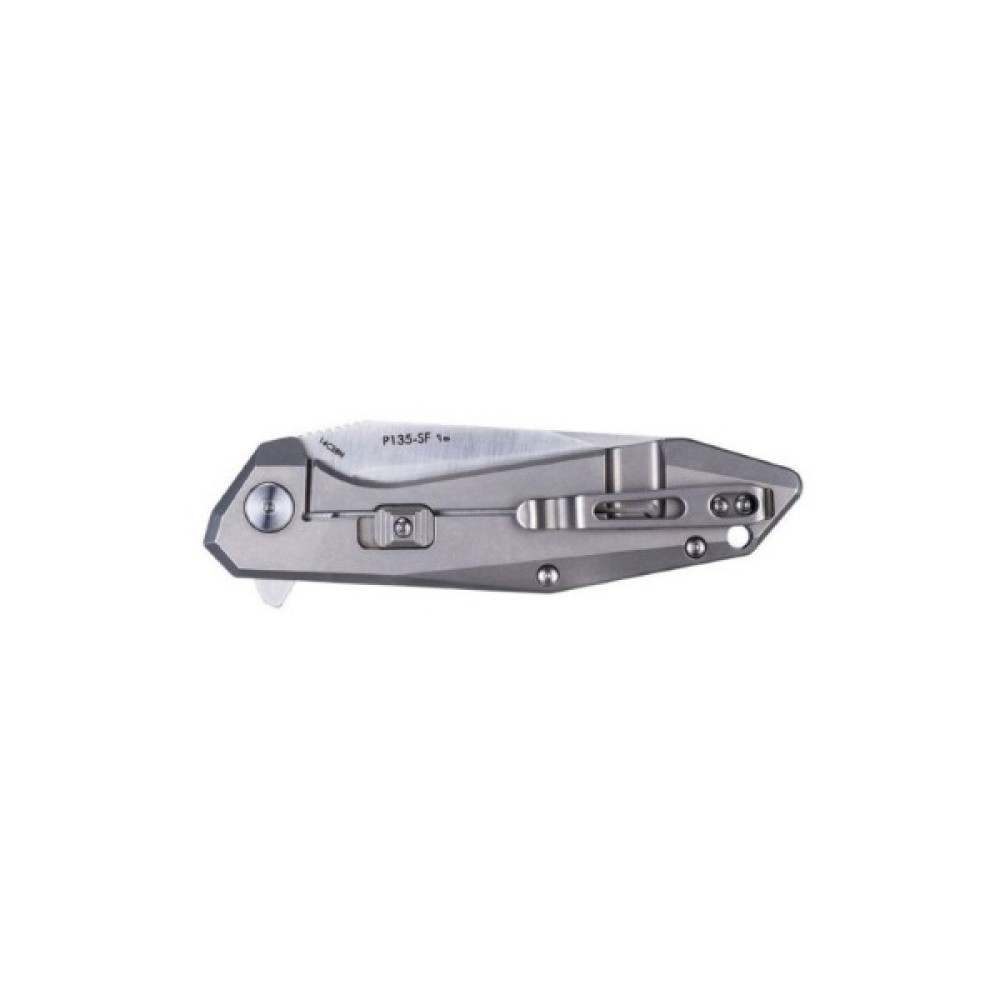 Клинок моделі Ruike P135-SF виконаний з нержавіючої сталі марки 14C28N, яка була загартована до рівня 58-60 HRC.