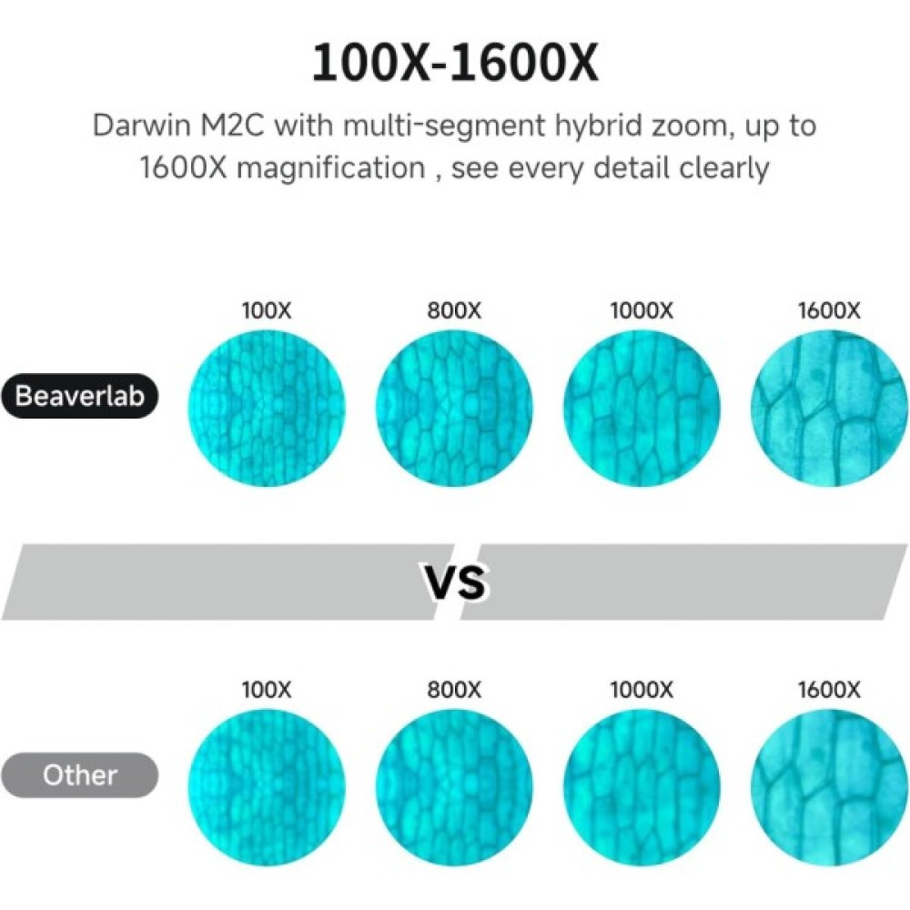 Цифровий мікроскоп BeaverLAB DDL-M2 Portable оснащений 4.3-дюймовим IPS-екраном, який полегшує спостереження за мікродеталями. Мікроскоп Darwin M2 дозволяє знімати відео та фотографії у форматі Full HD з роздільною здатністю 1920x1080 завдяки 2.0-мегапіксельному CMOS-сенсору.
