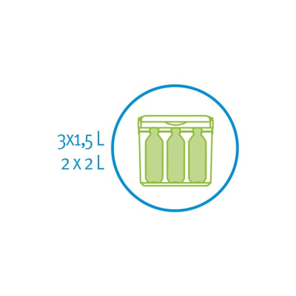 • Може вмістити 6 пляшок об'ємом 0.5 л, або 3 пляшки по 1.5 л, або 2 пляшки об'ємом 2 л.