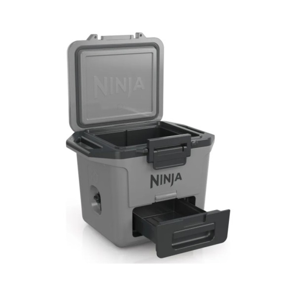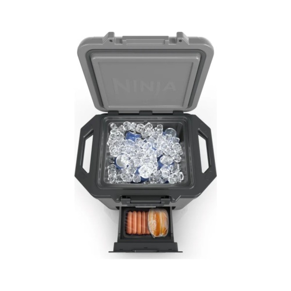 Навіть протягом відключень електрики, у польових умовах під час виконання бойових завдань чи відпочинку за містом хочеться харчуватися свіжими стравами. Про ваш комфорт та збалансоване меню подбає термобокс Ninja FrostVault 28L Hard Cooler - Cloud White FB131EUWH! Продукти та напої залишаться ідеально свіжими до 5 днів, тому що крига не тане саме протягом такого терміну. Термобокс з інноваційною технологією FrostVault підтримує температуру близько 4,5 ° C та компактно зберігає упаковки. Більше ніяких пошкоджених інгредієнтів – суха скринька Dry Zone зберігає все без додавання льоду. Це особливо зручно для бутербродів, паперових упаковок або ніжних тістечок. А як щодо напоїв чи консервів у банках? Бокс розрахований на максимальне наповнення 26 одиницями з льодом або 48 без нього. А міцний замок, зручні бічні ручки та ультраміцний пластик гарантують, що пристрій витримає будь-які випробування у дорозі. Бокс настільки надійний, що його можна використовувати як сидіння і він не відкриється під час транспортування. А мінімалістичний дизайн у білому кольорі із сірими елементами не привертатиме зайвої уваги.