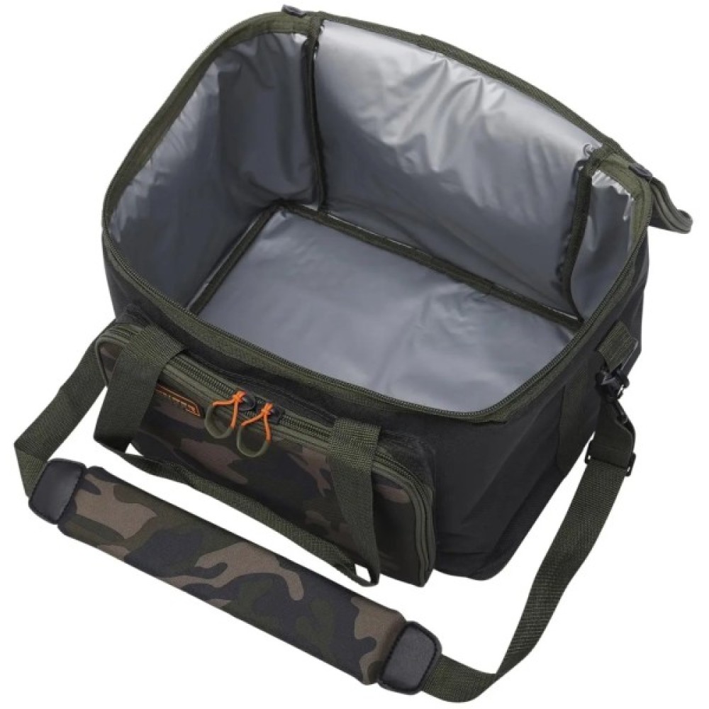 Термосумка Prologic Avenger Cool Bag дозволяє зберігати продукти або насадки і готову прикормку свіжими в жарку погоду, а також тепло гарячих страв в прохолодних умовах. На зворотному шляху з риболовлі в сумку можна упакувати улов. Зовнішньої тканиною сумки є водонепроникна 600D Rip-stop. Стінки сумки мають прошарку з пористого м'якого матеріалу, внутрішня блискуча поверхня сумки відбиває інфрачервоне випромінювання. Такі особливості конструкції сприяють ефективному термічному балансу всередині сумки. На передній стінці із зовнішнього боку розташована кишеня на блискавці для зберігання дрібниць. Термосумка Prologic Avenger Cool Bag переноситься на ремені через плече з м'якою накладкою або за допомогою двох ручок.