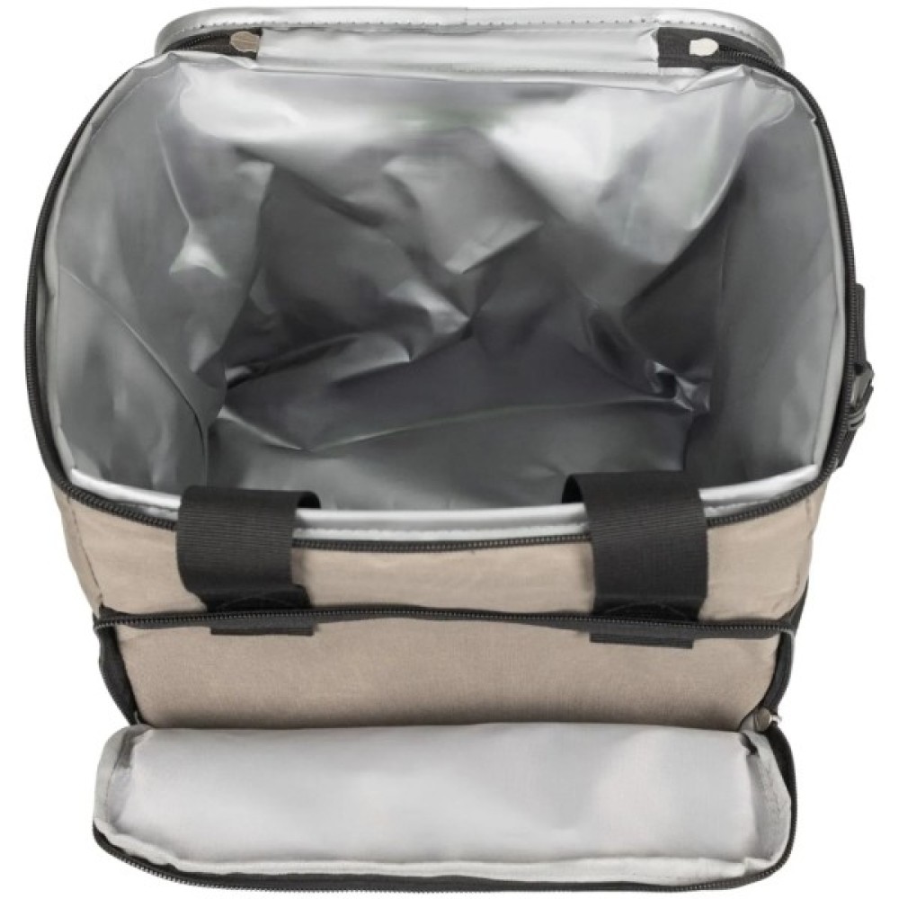 Термосумка Tribe Cooler 10 L зручне та універсальне рішення для збереження свіжості продуктів та напоїв під час відпочинку, поїздок за місто чи навіть коротких прогулянок. Ця сумка об'ємом 10 літрів поєднує в собі легкість, місткість та ефективну ізоляцію. Основне відділення на блискавці з двома бігунками ідеально вміщує все необхідне: від бутербродів та фруктів до напоїв у пляшках, а спеціальне внутрішнє покриття з EPE EVA піни та поліетилену допомагає підтримувати низьку або помірну температуру вмісту. Для покращення ефекту охолодження рекомендується використовувати акумулятори холоду (не входять до комплекту). Крім цього, термосумка оснащена зручною передньою кишенею на блискавці та двома бічними кишенями-сітками, де можна зберігати дрібні аксесуари або столові прилади. Завдяки практичним ручкам із текстильним фіксатором на Velcro та регульованому плечовому ременю, який при необхідності можна від'єднати, цю сумку можна носити в руках або через плече, не відчуваючи дискомфорту. Зовнішній шар із поліестеру 300D з покриттям PVC робить догляд за виробом надзвичайно простим, адже будь-які забруднення легко витираються вологою губкою або серветкою.