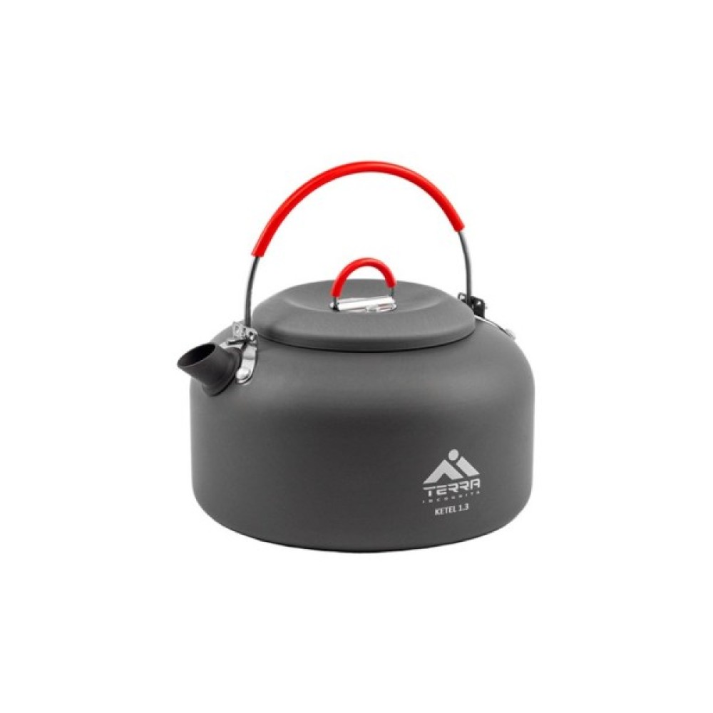 Чайник туристичний з кришкою. Ручки чайника та кришки мають захисні силіконові накладки, які не нагріваються. Чайник упакований в зручний сітчатий чохол.