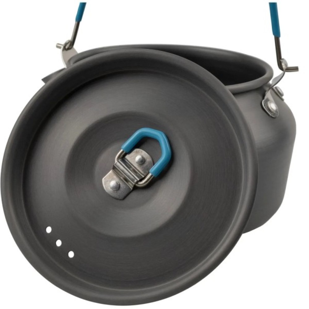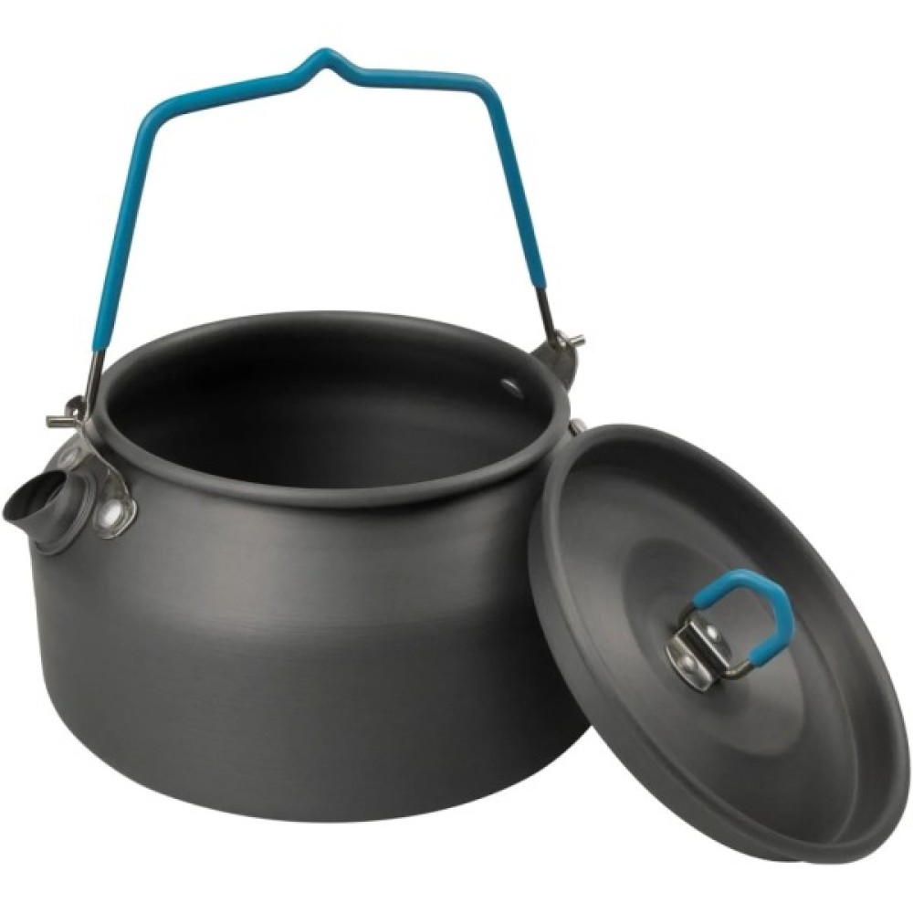 Легкий чайник об'ємом 1 л виготовлено з анодованого алюмінію 5052. Підходить для використання на пальнику або плиті. Має складану ручку з покриттям, яке не обпікає руки.