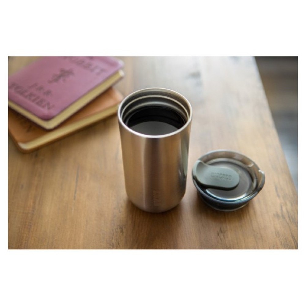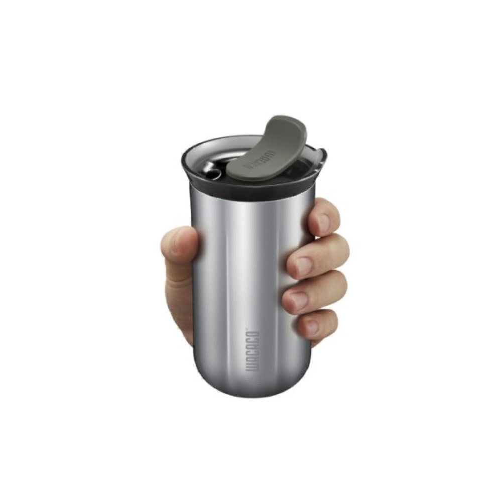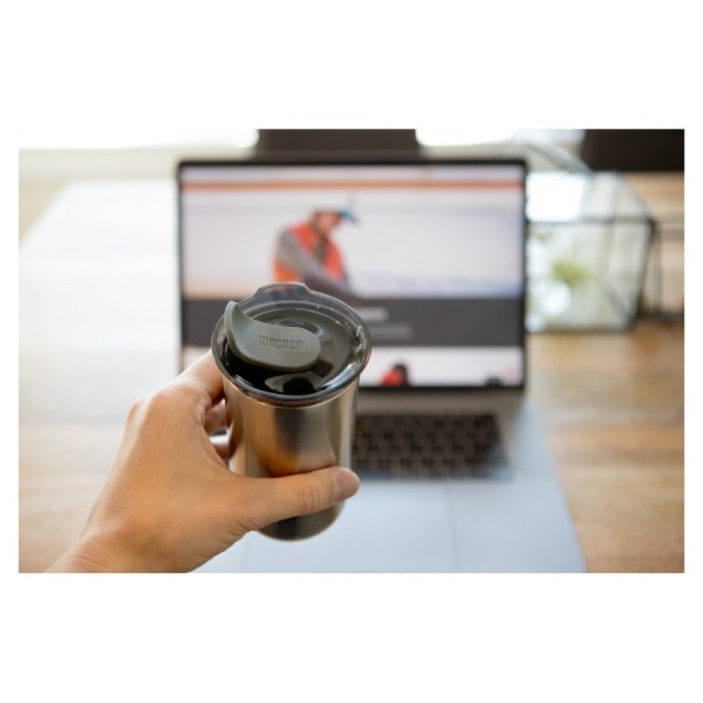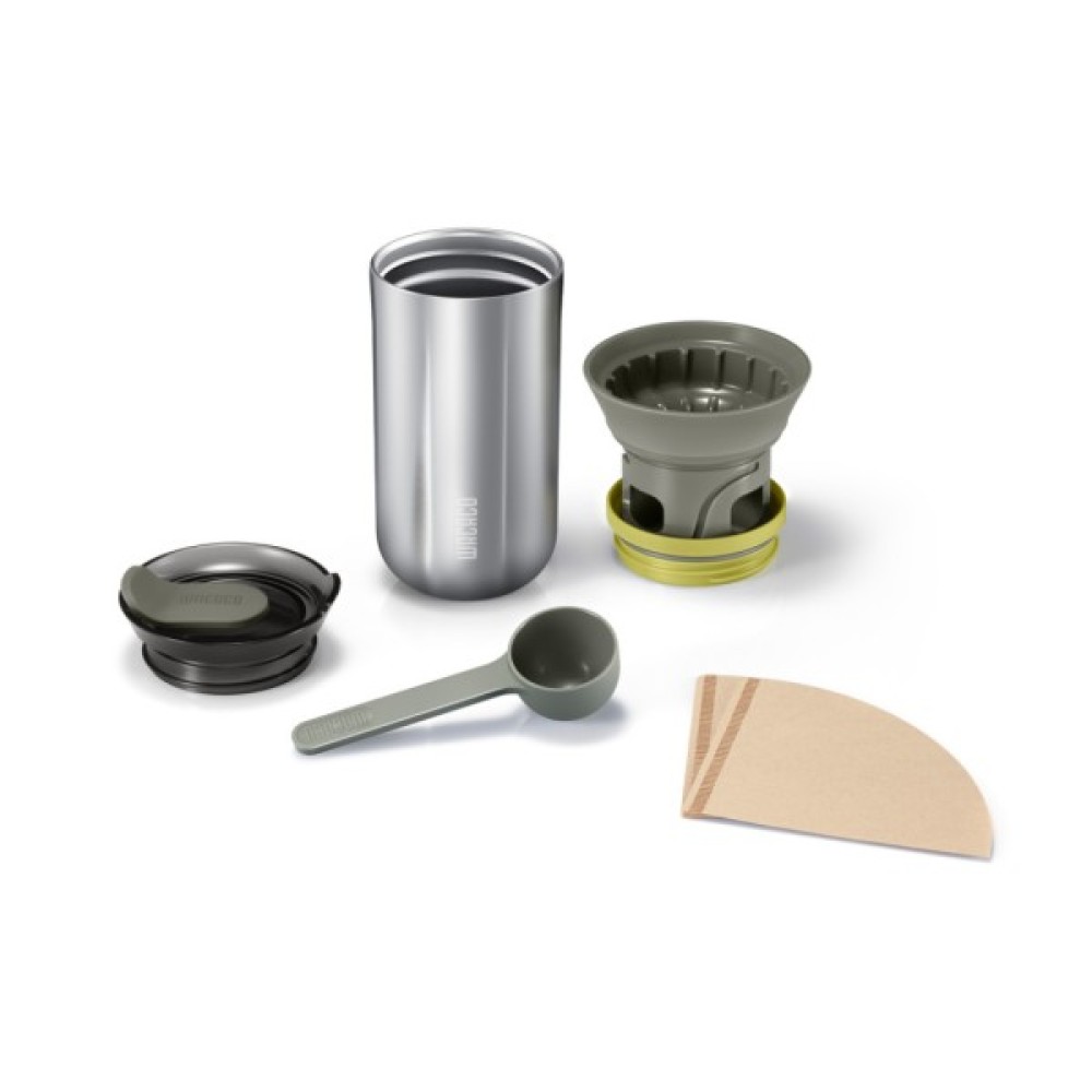 Компактний дріпер-термокухоль Wacaco Cuppamoka призначений для приготування кави методом проливу (пуровер), дозволяючи насолоджуватися ароматним напоєм в офісі, у відрядженні та в подорожі. Аксесуар робить процес заварювання кави швидким і простим: просто встановіть паперовий фільтр (є в комплекті), сумісний з паперовими фільтрами v60, додайте мелену каву, залийте окріп, і через кілька хвилин ваш напій готовий. До того ж Cuppamoka можна використовувати як термокухоль, герметична кришка якого запобігає проливанню рідини.