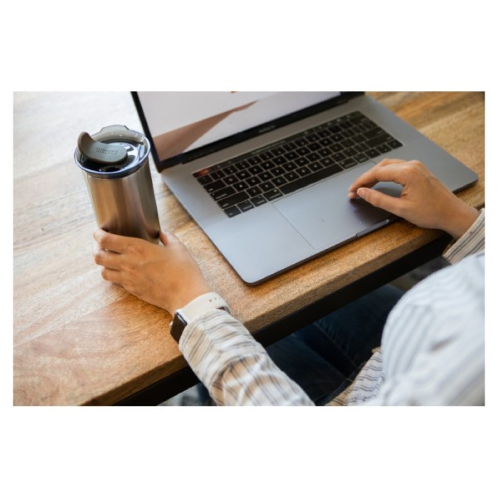 Дріпер виготовлений з високоякісної нержавіючої сталі з подвійними стінками та вакуумною ізоляцією. Підтримує температуру напою теплою або холодною до 8 годин (залежить від початкової температури напою, температури навколишнього середовища та частоти відкривання кришки). Дрібні елементи виконані з термостійких матеріалів: тритану, поліпропілену (PP) та силікону.