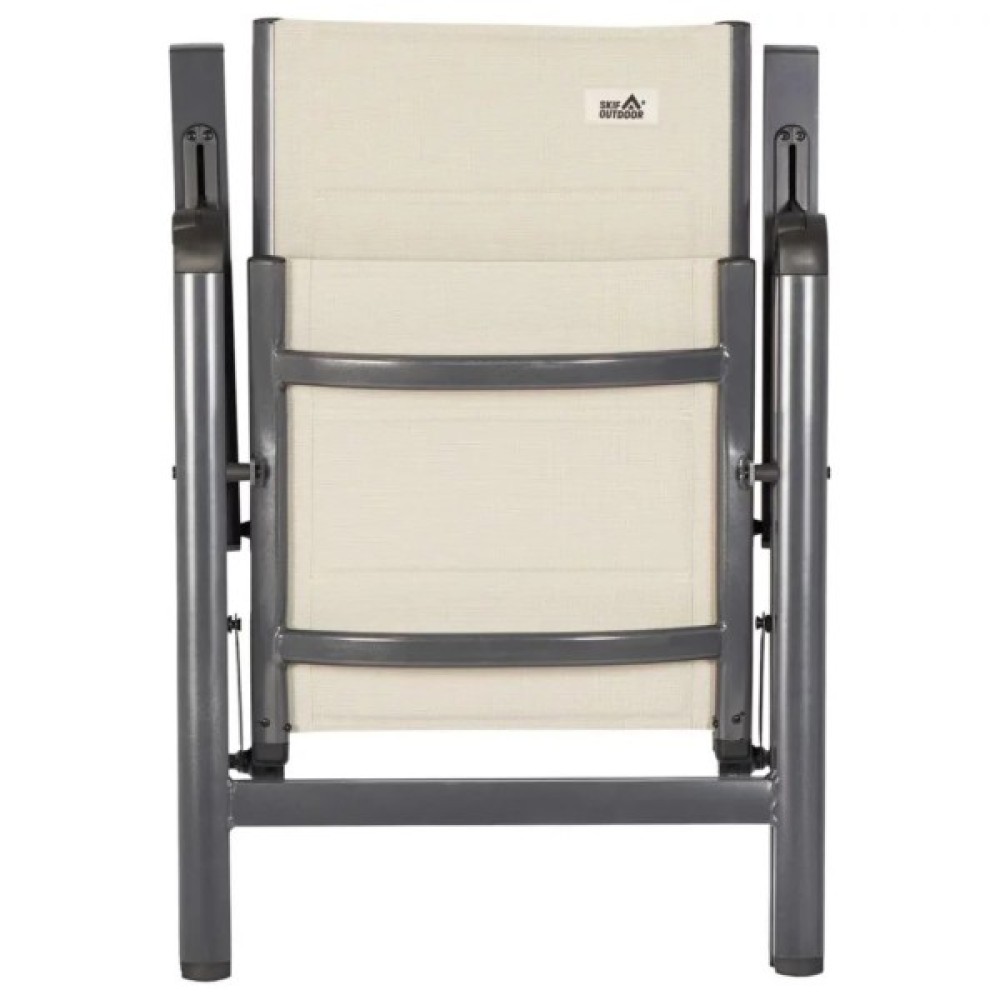 Компактні розміри у складеному вигляді 87х59х12 см полегшують перенесення в рюкзаку або в руці. Розкриття випорожнення відбувається за секунди. Підлокітники підвищують зручність, а кут спинки, що регулюється, дозволяє адаптувати положення під індивідуальні потреби.
