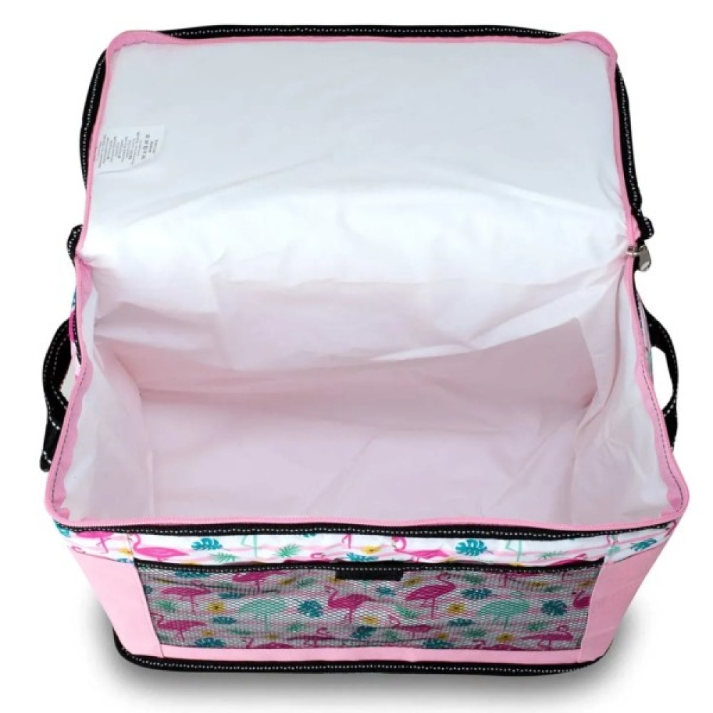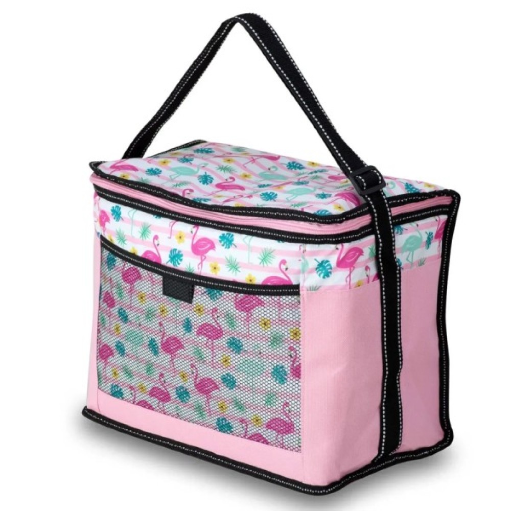 Завдяки значному регулюванню ременя по довжині, сумку можна носити на плечі, або в руці, укоротивши ремінь максимально. Термосумка оснащена фасадною сітчастою кишенею для дрібних речей.