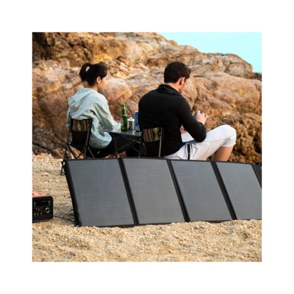 Водонепроникний, стійкий до корозії та високих температур корпус сонячної панелі робить її ідеальним варіантом для кемпінгів, походів, пікніків. Розміщуйте панель на своєму авто чи просто розкладайте на відкритій поверхні. Використовуйте підставку-кронштейн для встановлення панелі під кутом 45° та досягайте максимальної енергоефективності.
