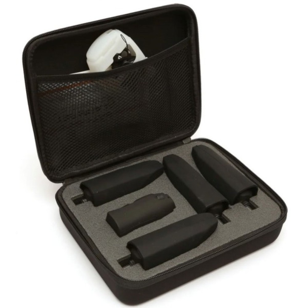 Комплект сигналізаторів поставляється в зручному протиударному кейсі з неопреновим наповнювачем. Додаткові транспортувальні гумові чохли на кожен з сигналізаторів і пейджер, захищають їх від пошкоджень під час перевезення. А також додатковий флуоресцентний чохол для пейджера, допоможе знайти його вночі в наметі.