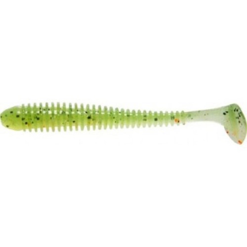 Силікон Keitech Swing Impact являє собою виброхвіст з подорвженим ребристим тілом. Тіло приманки має оригінальну форму, перетин відрізняється в передній(А) і задній(В) частинах приманки, що надає їй особливу гру. П'ята віброхвоста дуже рухлива і включається в гру при дуже повільній проводці. Ребристість на тілі приманки створює додаткові збурення у водному середовищі, що привертають увагу хижака з великої відстані.