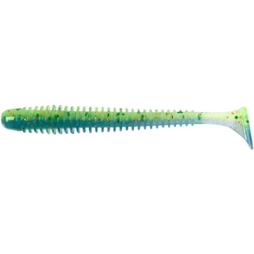 П'ята виброхвоста дуже рухлива і включається в гру при самій повільній проводці. Ребристість на тілі приманки створює додаткові збурення у водному середовищі, що привертають хижака з великої відстані.
