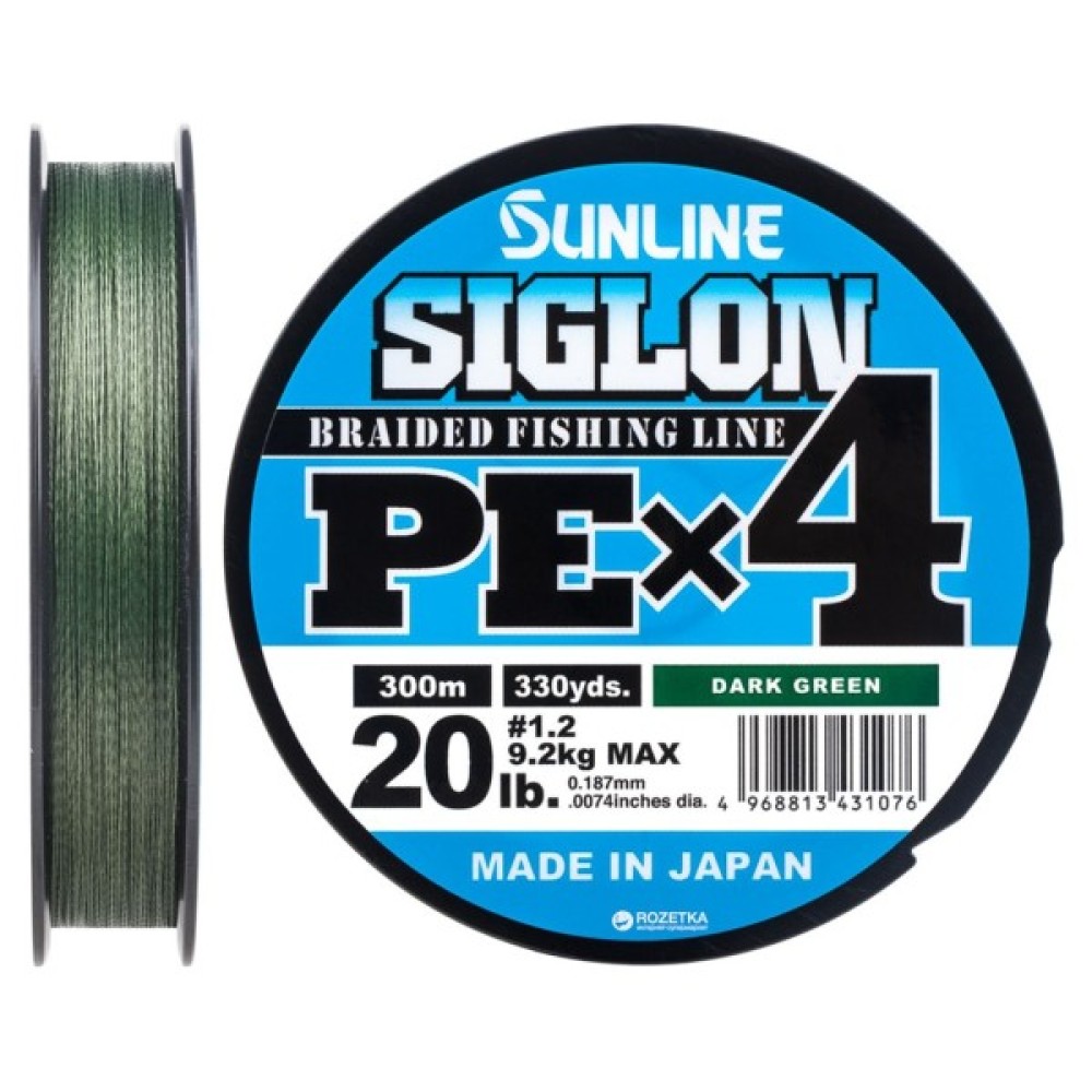 Шнур Sunline Siglon PE н4 300m 1.2/0.187mm 20lb/9.2kg Dark Green (1658.09.47)
