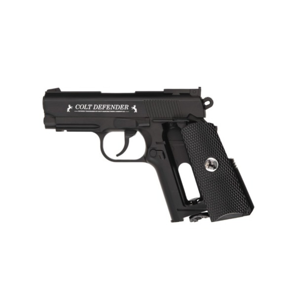 Капсула CO₂ утримується в рамі та може бути швидко замінена. Ручний запобіжник запобігає випадковому пострілу. Під дулом кріпиться планка Weaver для додаткових аксесуарів. Рама та затвор зроблені з металу, що надає Colt Defender реалістичної ваги та чудових відчуттів.