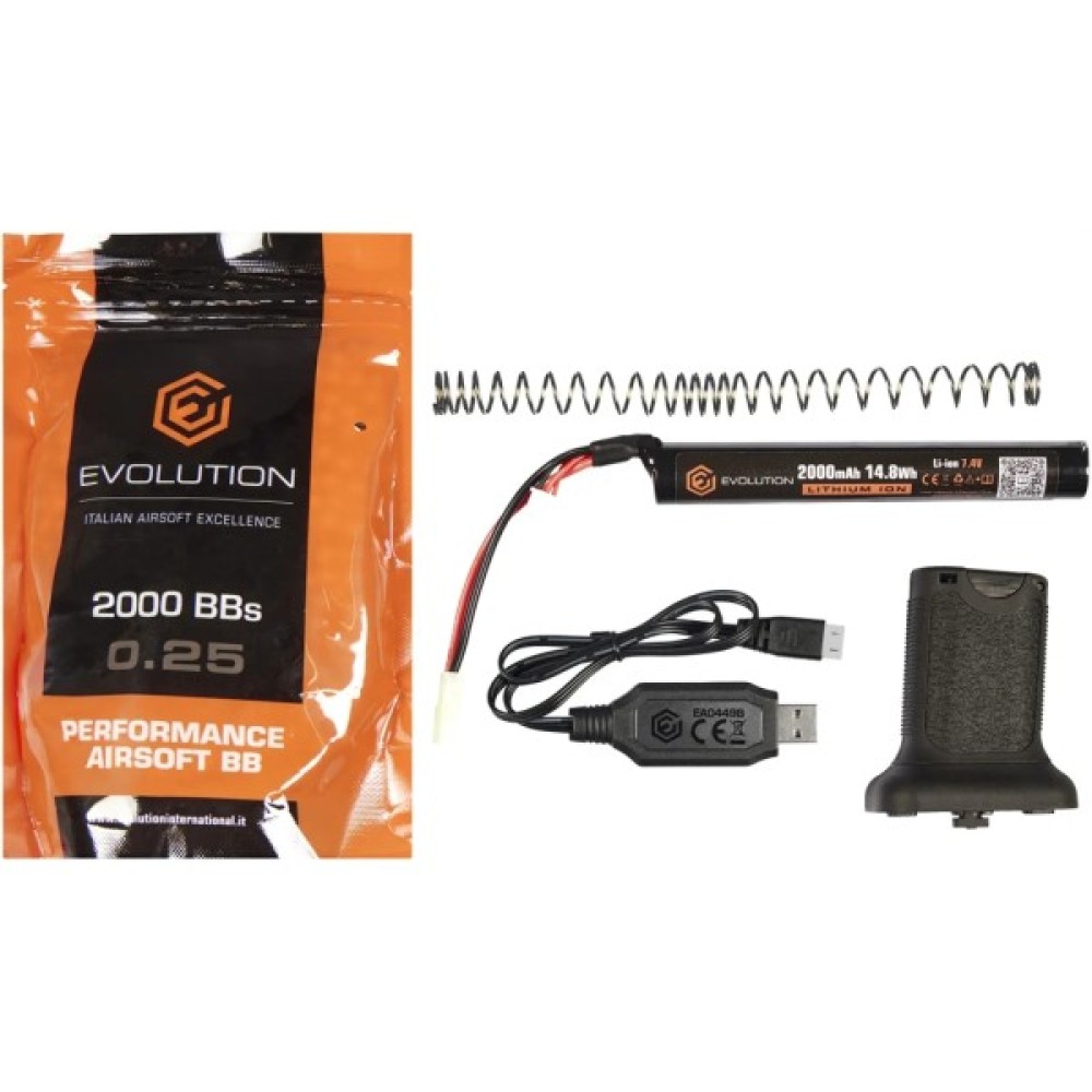 У стартовий комплект входять: акумулятор, зарядний пристрій, 2000 кульок вагою 0,25 г і калібра 6 мм.