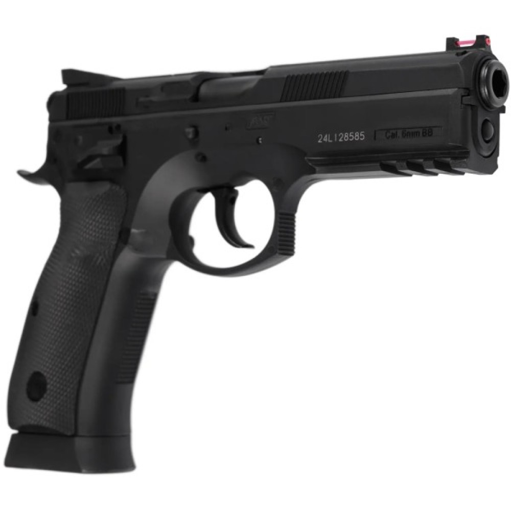 Страйкбольна версія від ASG ліцензована компанією CZ, саме тому на ній нанесені всі автентичні маркування та унікальний серійний номер. Вона доволі легка та проста у використанні. Для кращого тримання в руці, ергономічне руків’я має гумові накладки. Прицільні пристосування представляють собою цілик і оптоволоконну мушку червоного кольору. Інтегрована планка Пікатінні дозволяє встановити на пістолет додаткові аксесуари, такі як лазерні цілевказівники та підствольні ліхтарі.