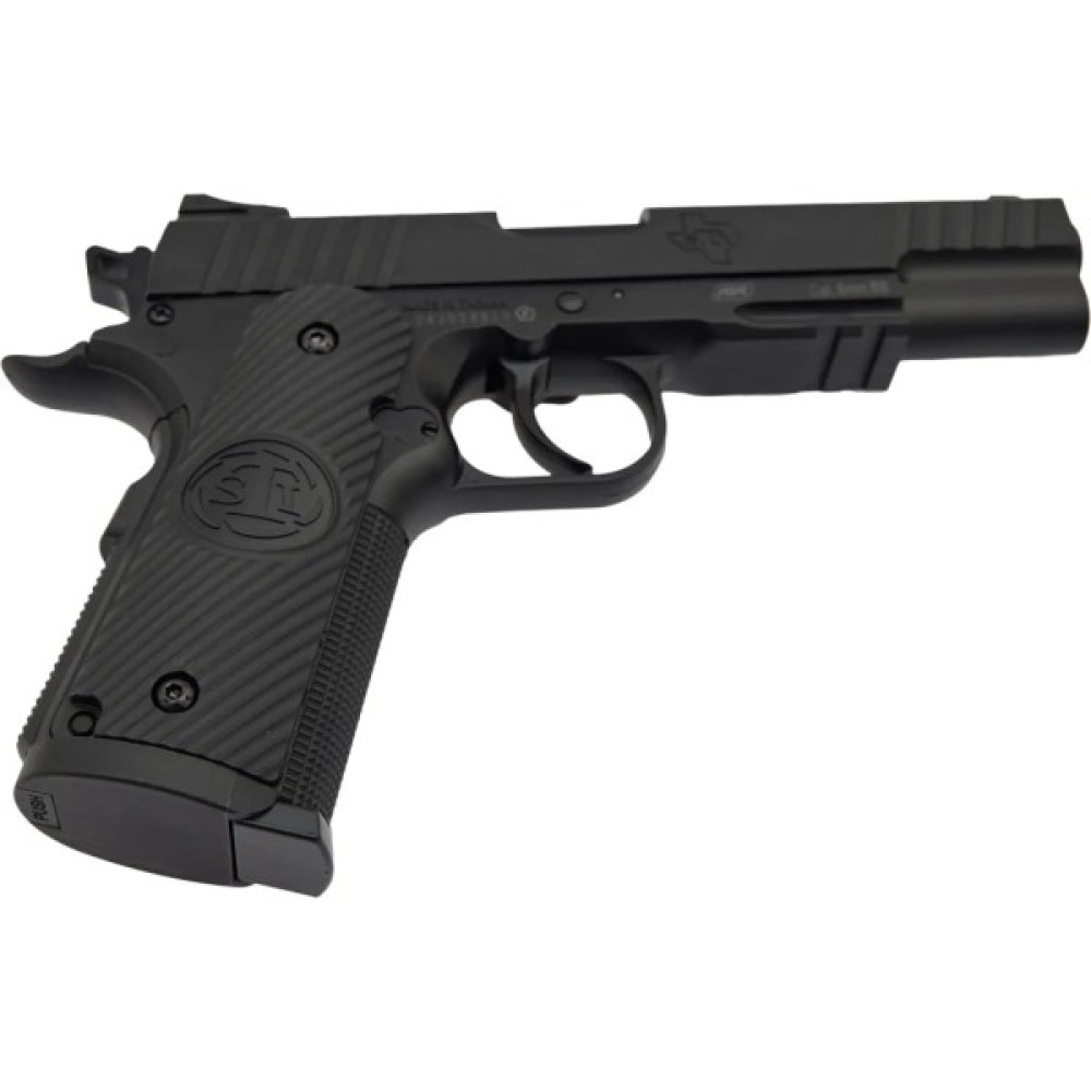 Пістолет ASG моделі STI Duty One виготовляються як у звичайній версії, так і у версії з імітацією перезаряджання (відкатом затворної рами при пострілі) – BLOWBACK Функція BLOWBACK абсолютно не впливає на політ кульки, при цьому створюючи відчуття використання бойового пістолета.