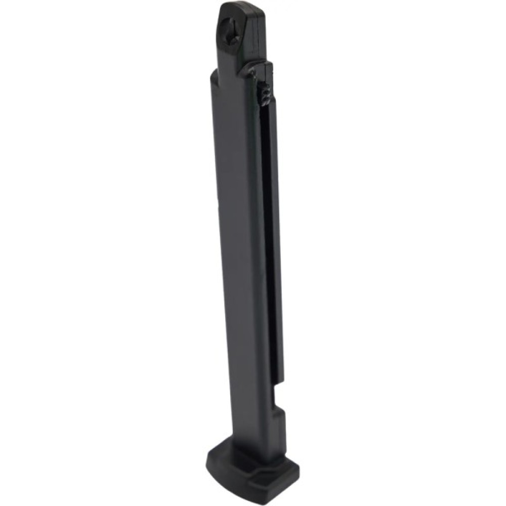 Магазин відокремлюється за допомогою кнопкового механізму. Балон СО2 установлюється окремо від магазина в спеціальну камеру в задній частині руків'я.