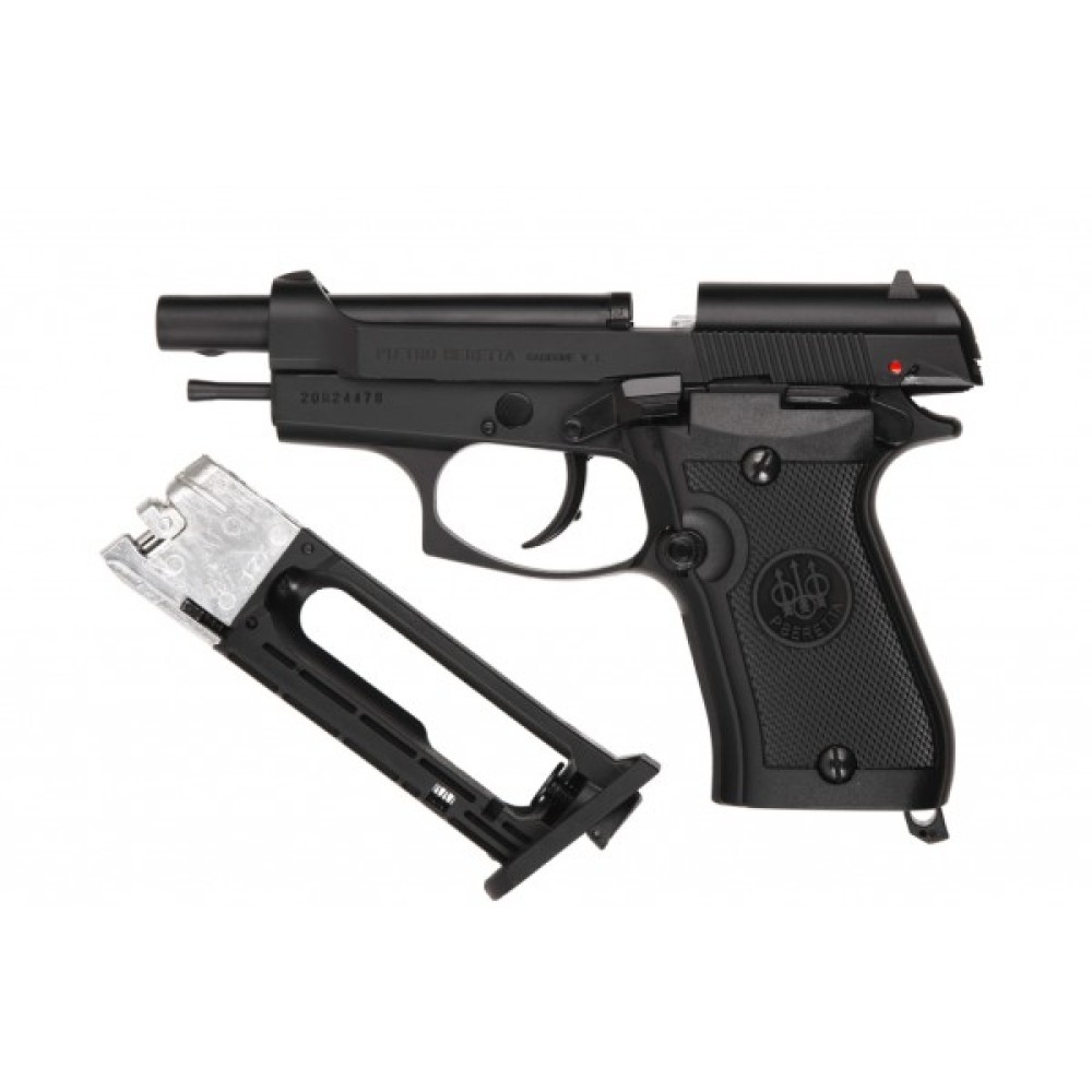 Umarex серйозно ставиться до своїх ліцензій. Ця CO₂ копія Beretta Mod. 84 FS має всі переваги оригіналу: він добре лежить у руці та простий в експлуатації. Міцний суцільнометалевий пістолет має знімний магазин, що вміщає 17 4,5-мм кульок BB і 12-грамову капсулу з CO₂. Затвор, двосторонній запобіжник і важіль зняття затвора забезпечують реалістичне використання й навчання. Завдяки своїй високій енергії й потужному ефекту відбою (Blowback) цей пістолет справляє воістину автентичне враження.