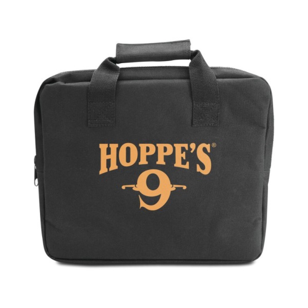 Набір для чищення Hoppe's включає найбільш необхідні чистячі приладдя та забезпечує місце для роботи з вогнепальною зброєю, де б ви не знаходилися. Цей набір для чищення включає багатосекційний шомпол, п'ять бронзових йоржиків для ствола, йорчик для чищення патронника кал .223 Rem, щіток для чищення зброї (з нейлону та бронзи), бавовняні патчі, вішер, а також стійкий до різноманітної хімії килимок, та сумку для перенесення. Цей набір для чищення найкращим чином підійде для різних виїздів, коли в пріоритеті максимальна компактність спорядження.