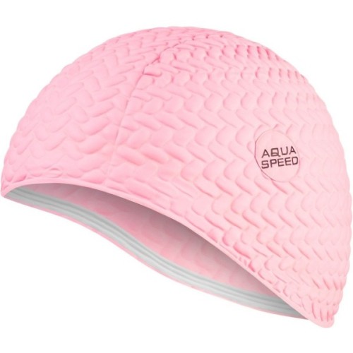 Шапочка для плавання BOMBASTIC - ідеальний вибір для жінок з довгим волоссям, які шукають простору та зручну посадку. Виготовлений з латексу з унікальним малюнком, BOMBASTIC також незамінний для плавців, що піклуються про свій стиль. Товстий гумовий матеріал, з якого виготовлена модель, а також бульбашки повітря на ковпачку означають, що цей головний убір тепліший за стандартну шапку, тому він ідеально підходить для використання у відкритих водоймах і відкритих басейнах.