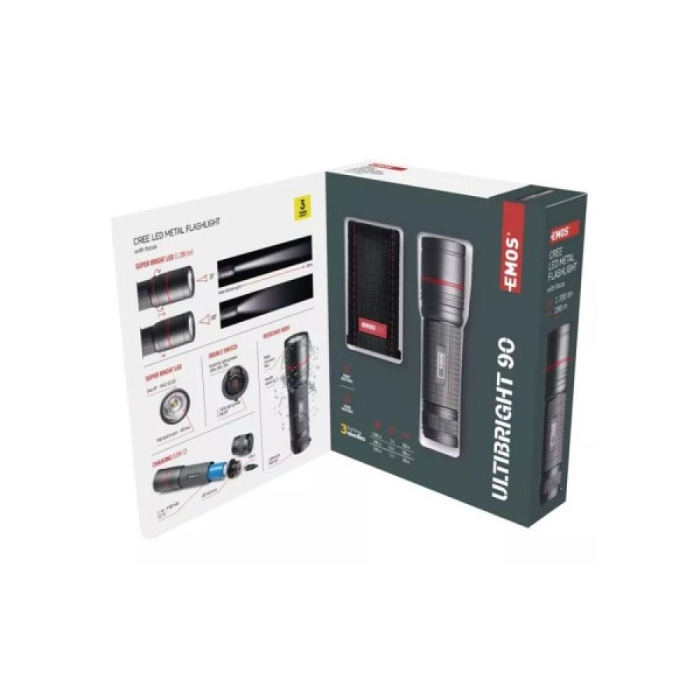 Ліхтар EMOS P3190 1200Lm Li-ion Metal (P3190) є частиною преміум лінійки ULTIBRIGHT, створеної чеським виробником EMOS, і відрізняється своєю винятковою якістю та надійністю. Цей ручний тактичний ліхтар виконаний із міцного металу, що забезпечує його стійкість до падінь з висоти до 1 метра, а також вологозахист класу IP65. Це робить EMOS P3190 ідеальним для використання в найрізноманітніших умовах, адже він не підведе ні за дощової погоди, ні в екстремальних ситуаціях.