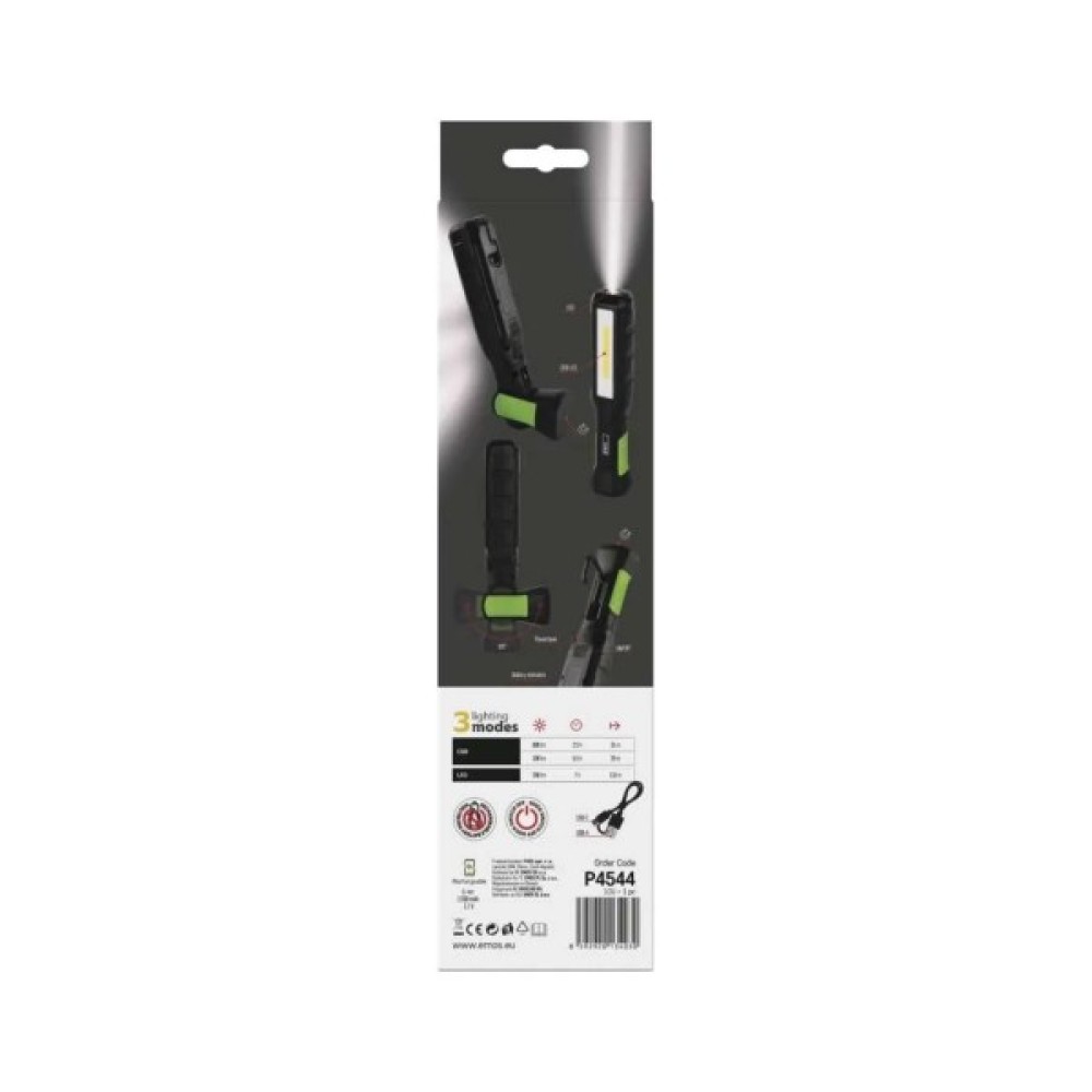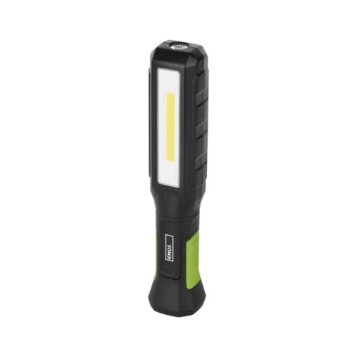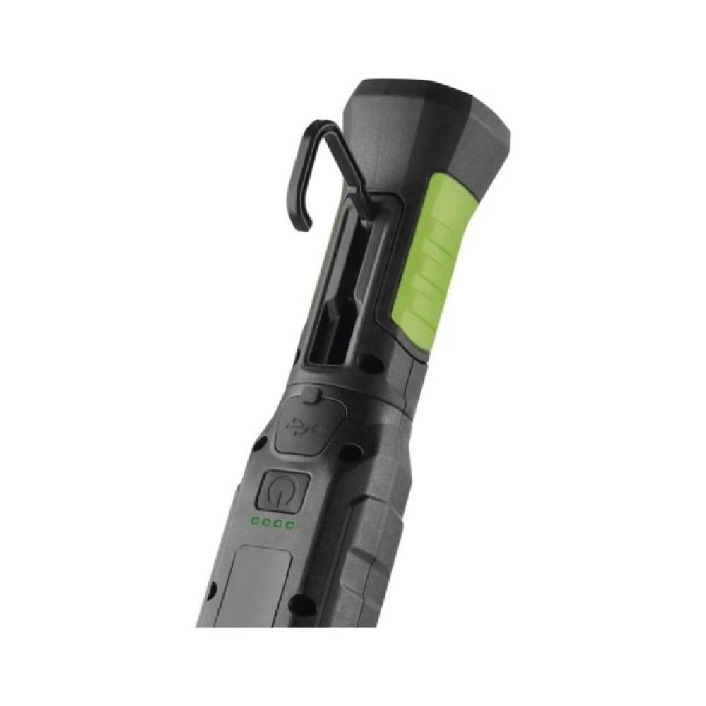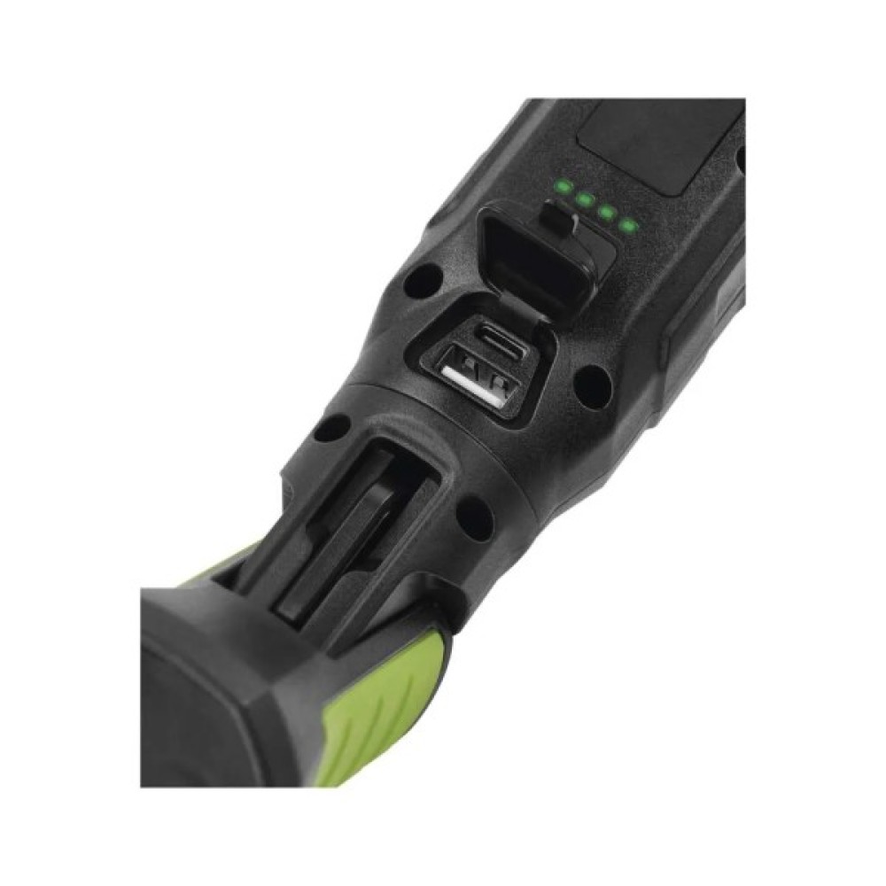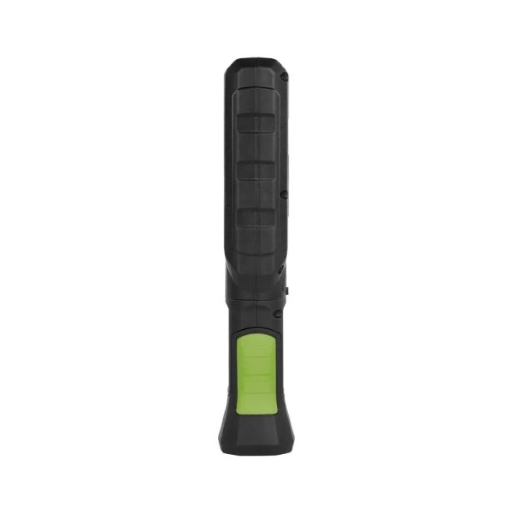 Дизайн ліхтаря в темно-зеленій палітрі з зеленими та чорними акцентами підійде для численних технічних застосувань як на будмайданчиках, в майстернях або СТО, так і вдома або на природі. Вага у 325 г та компактні розміри (довжина 255 мм) роблять його зручним для транспортування і використання.